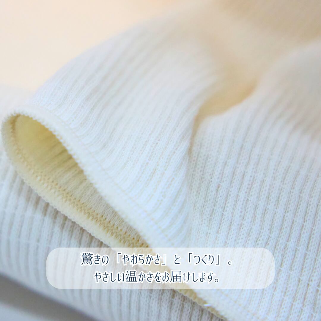 秋口から冬の足音が聞こえ出す晩秋まで。おなかや腰が冷えやすい方にちょうど良い厚さでに仕上げたあきのはらまきです。