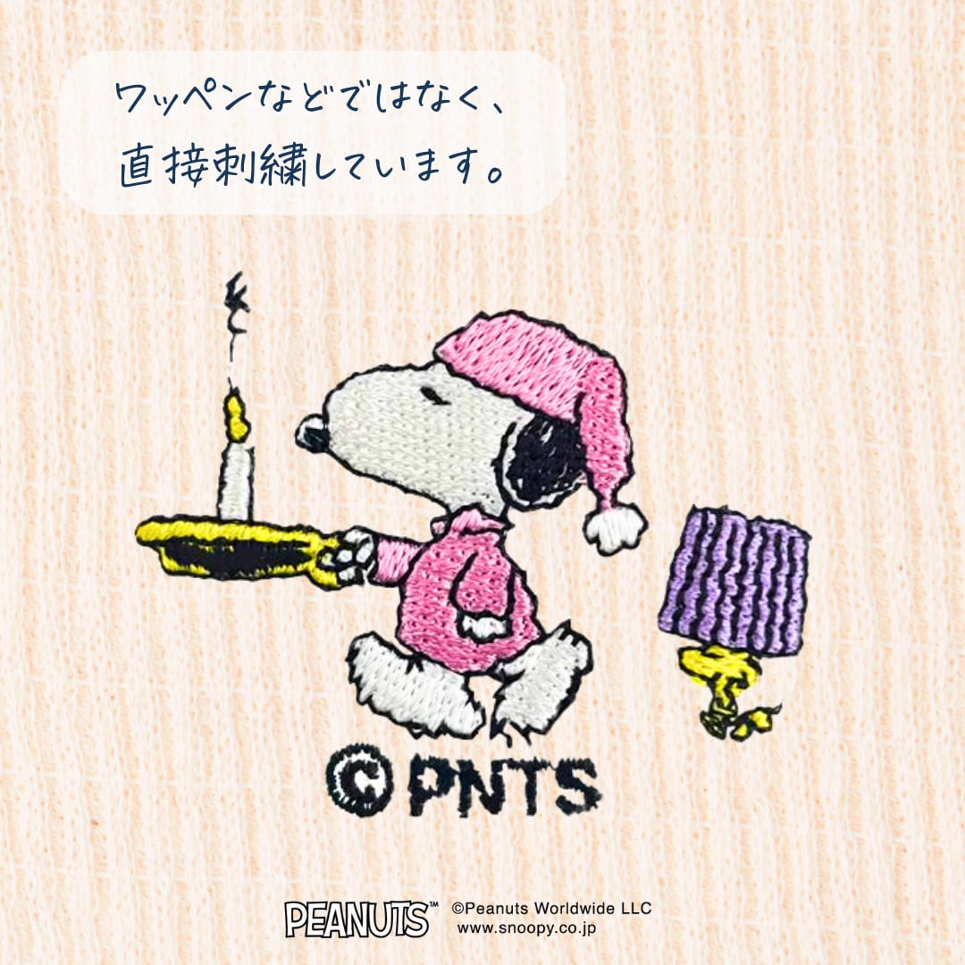 全世代に愛される「PEANUTS」のデザインをワンポイント刺繍であしらい、非常にシンプルで品があるデザインに仕上げております。はらまき本体、そして刺繍。