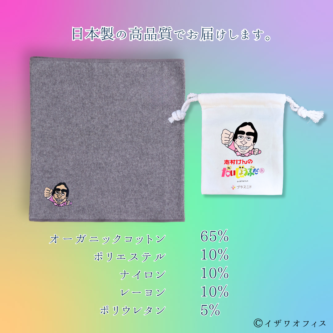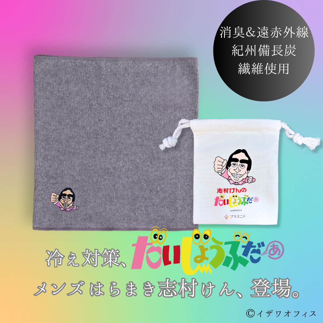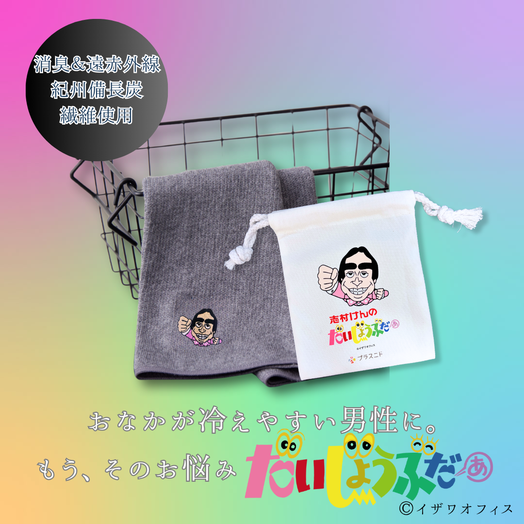 おなかが弱くて冷えやすいとお悩みの男性の立場になって考え、こだわり抜いた《メンズはらまき》です。90年代の人気番組『志村けんのだいじょうぶだぁ』コラボにて仕上げています。