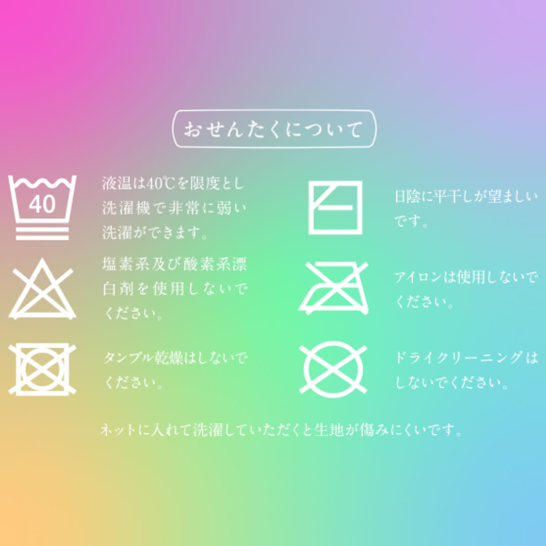 ※商品の特性上、乾燥機のご使用はお控えください。