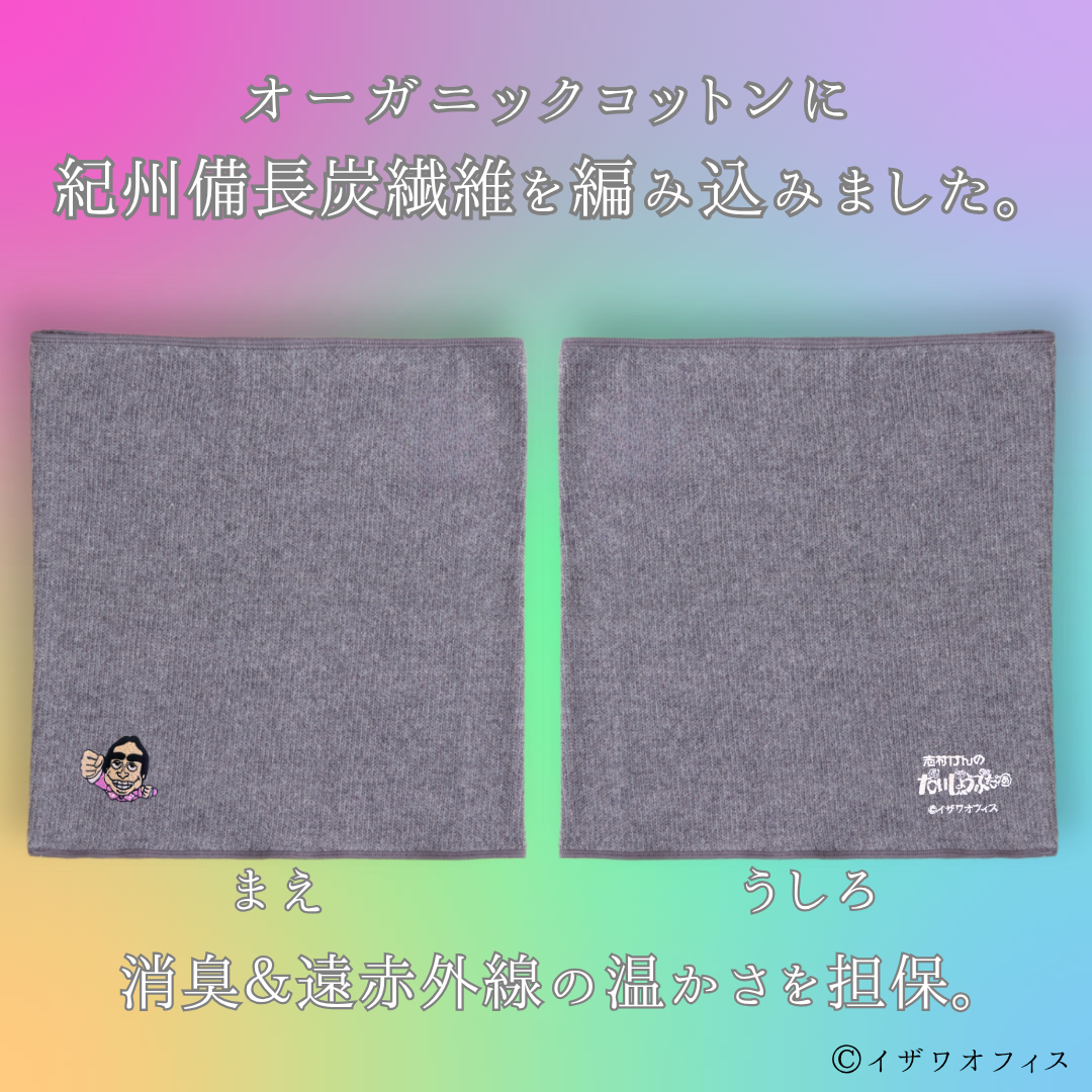 女性用はオーガニックコットンをメインに《肌さわり感》を重視した仕上げとなっておりますが、メンズはらまきは《消臭》《じんわり温める》効果を重視した作りに生地構成を変更しています。