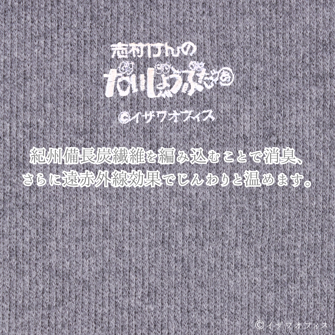 【紀州備長炭繊維】を編み込み、男性特有の汗の匂いを消臭。備長炭繊維ならではの遠赤外線効果で通気性に優れたやさしい温かさを提供いたします。