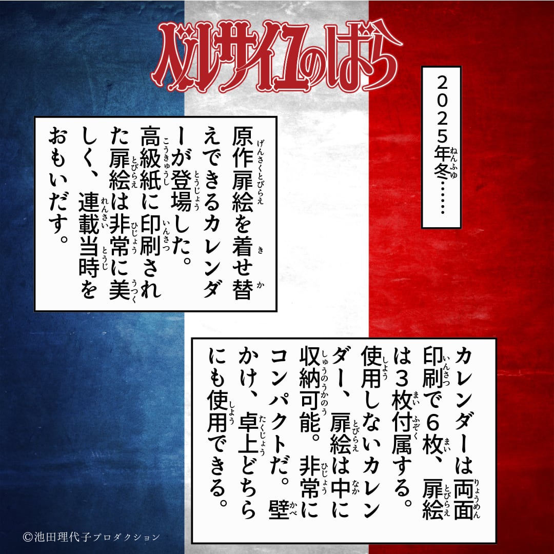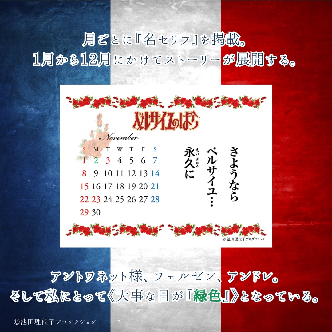 《ベルサイユのばら》原作扉絵の着せ替えを楽しむカレンダー