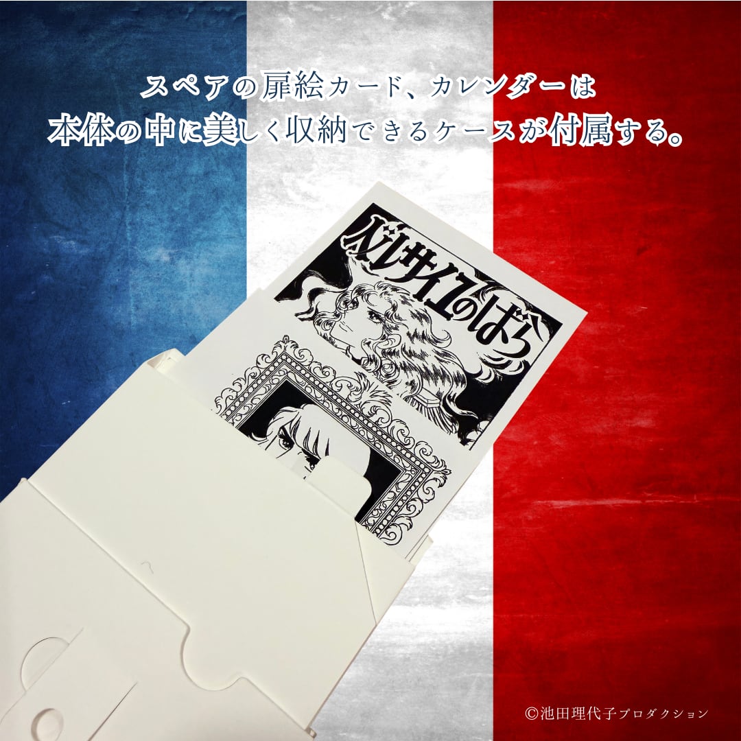 そしてカレンダーや扉絵を外した際、収納ボックスにはベルばらファンならニヤリとすること間違いなし、『ちょっとした遊び』を施しています。どうぞお楽しみに!