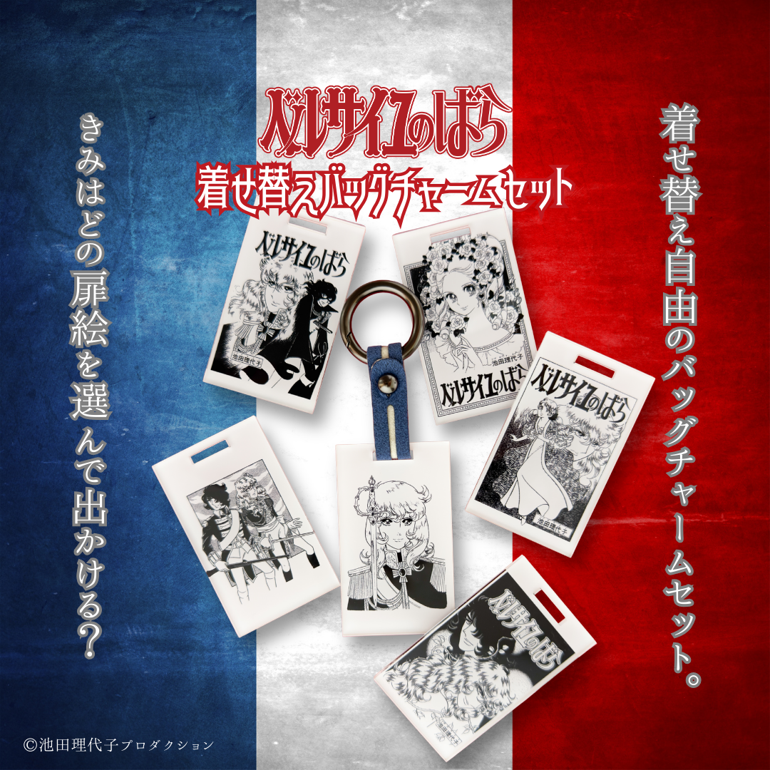 《ベルサイユのばら》の原作扉絵が『着せ替えバッグチャーム』になって登場!全6種類の美しいデザインが、あなたの個性を引き立てます。
