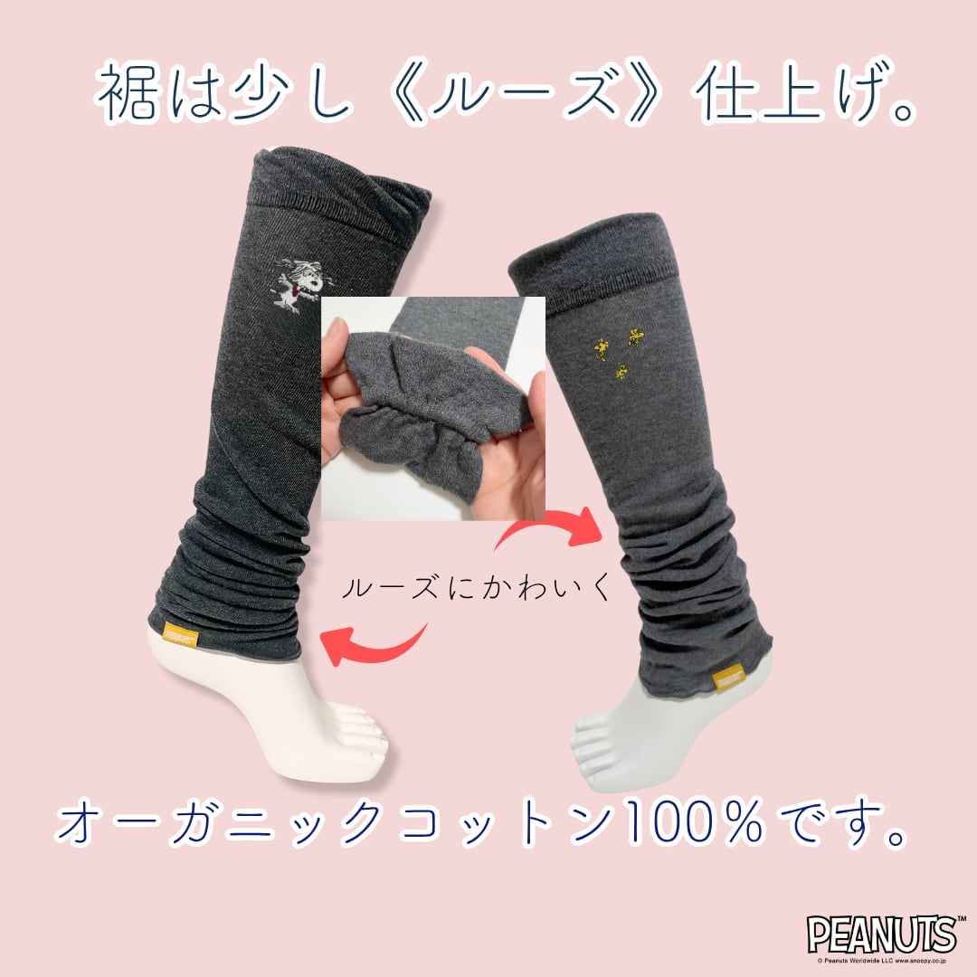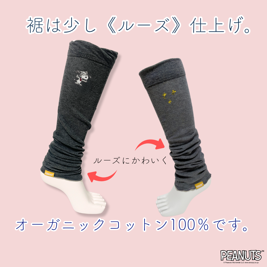質を重視した日本製。この春夏を快適に過ごせる《はるなつうすふわレッグウォーマー PEANUTS》で、心も体もリフレッシュしてください。