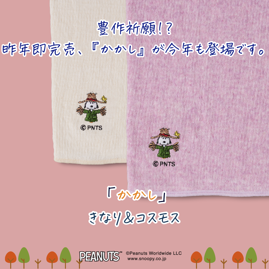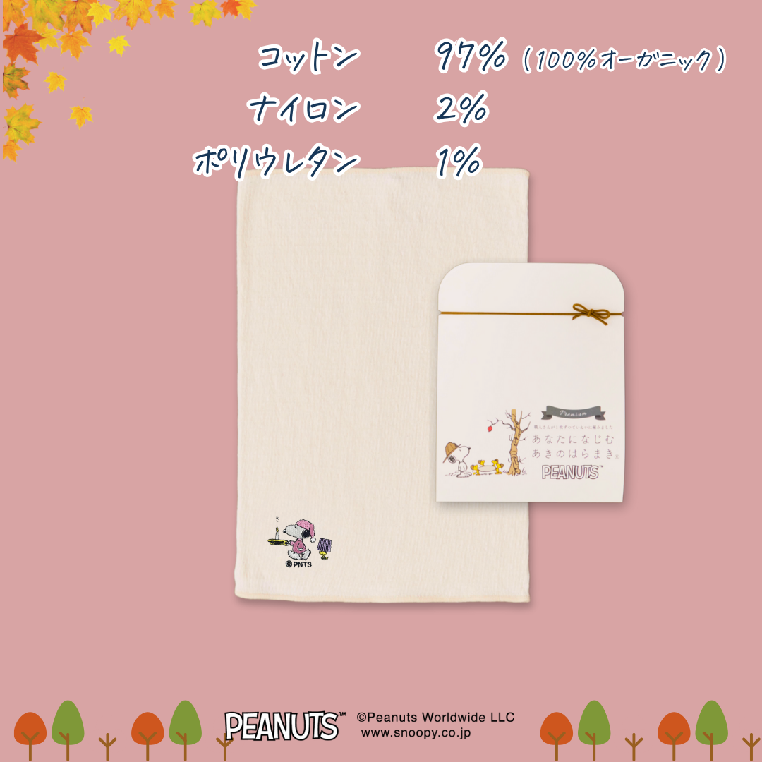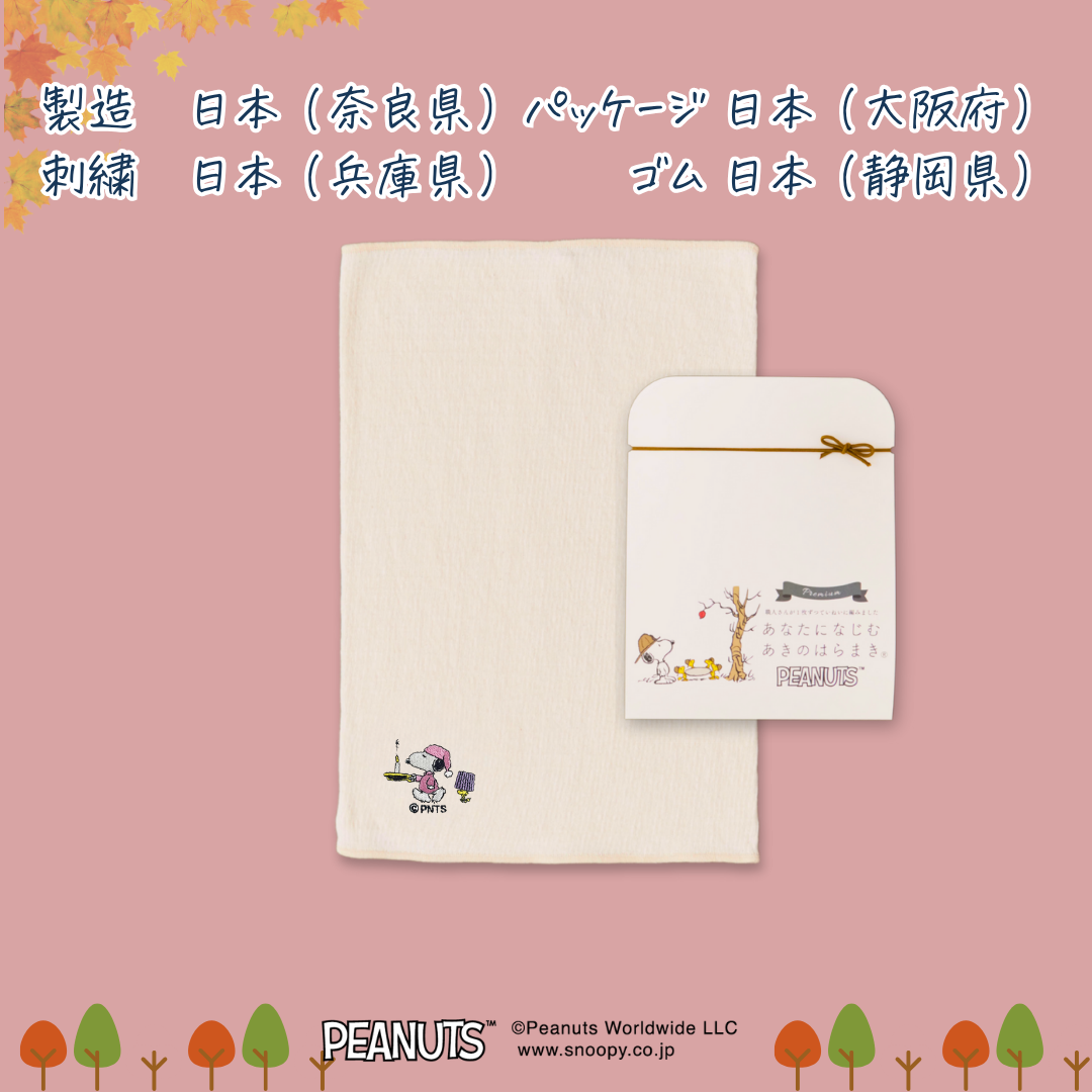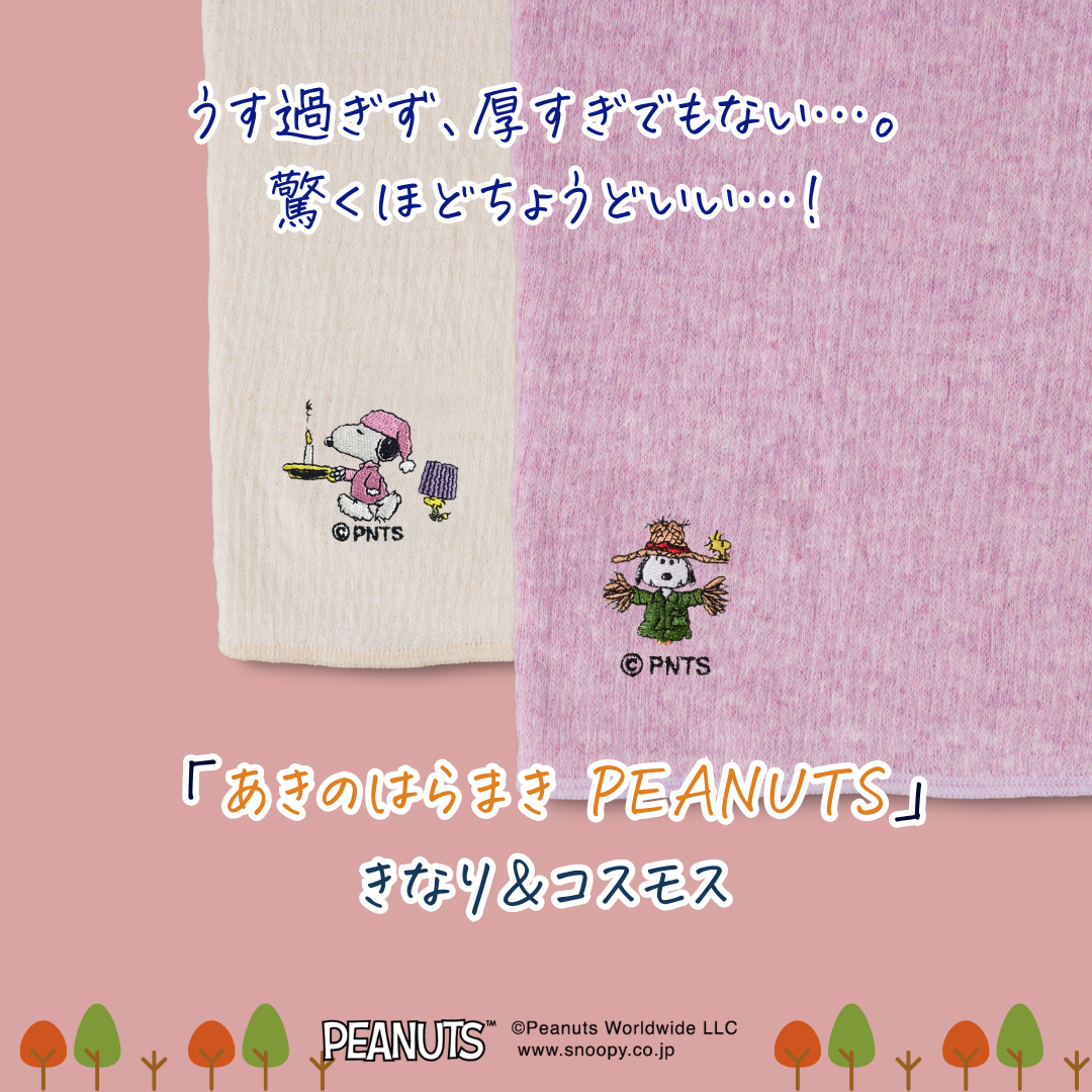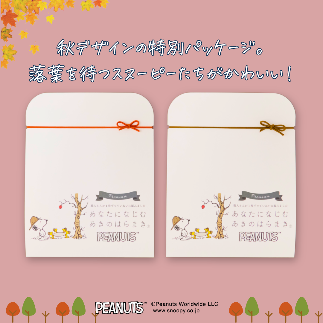 今年5年目を迎えた「あきのはらまきPEANUTS」。ちょうどいい厚さでファッションの邪魔をせず、やさしい心地よさが人気です。