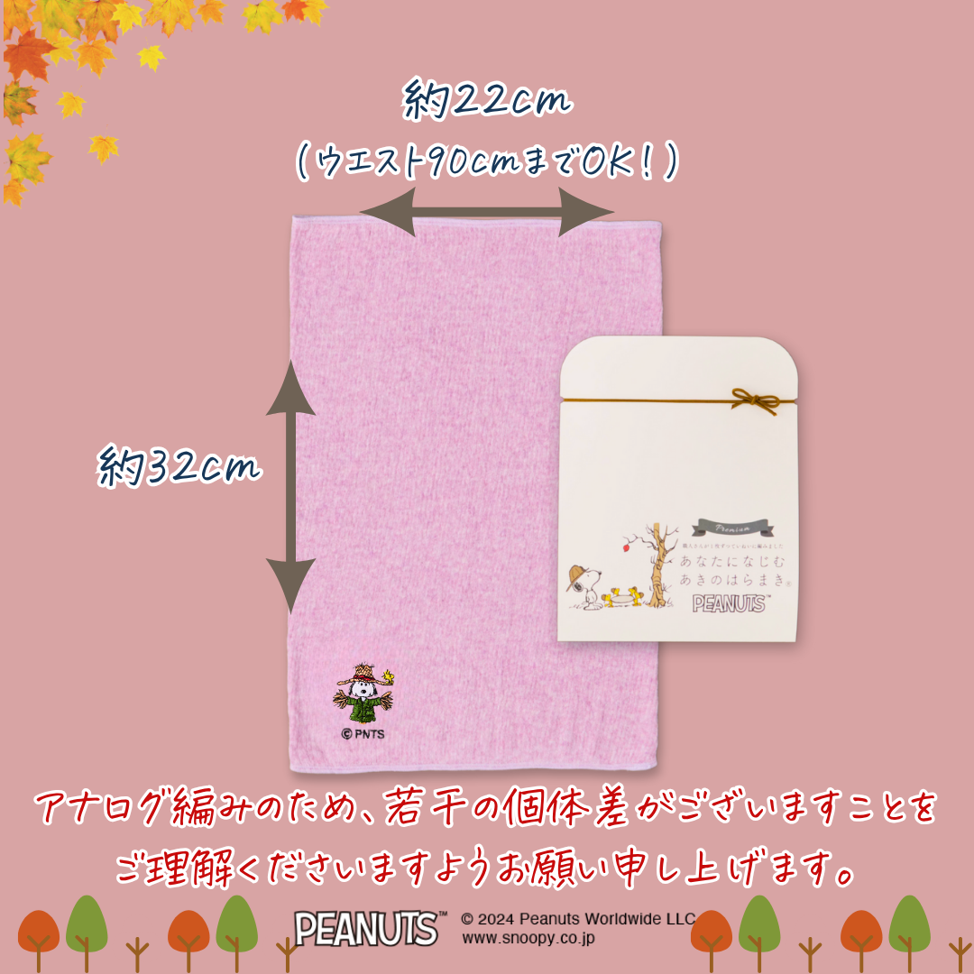 おなかや腰が冷えやすい方にぜひつけていただきたい高い品質のはらまきです。全世代に愛されるPEANUTSのコラボデザインでお届けいたします。【日本製】