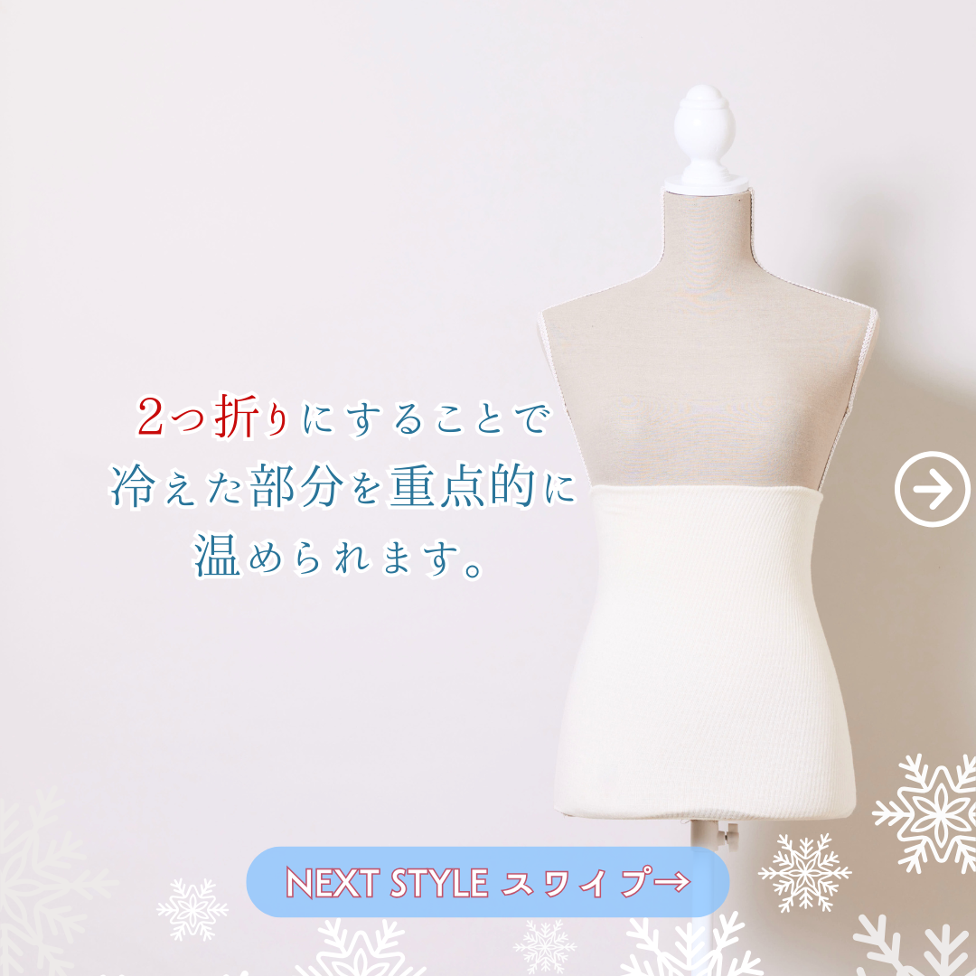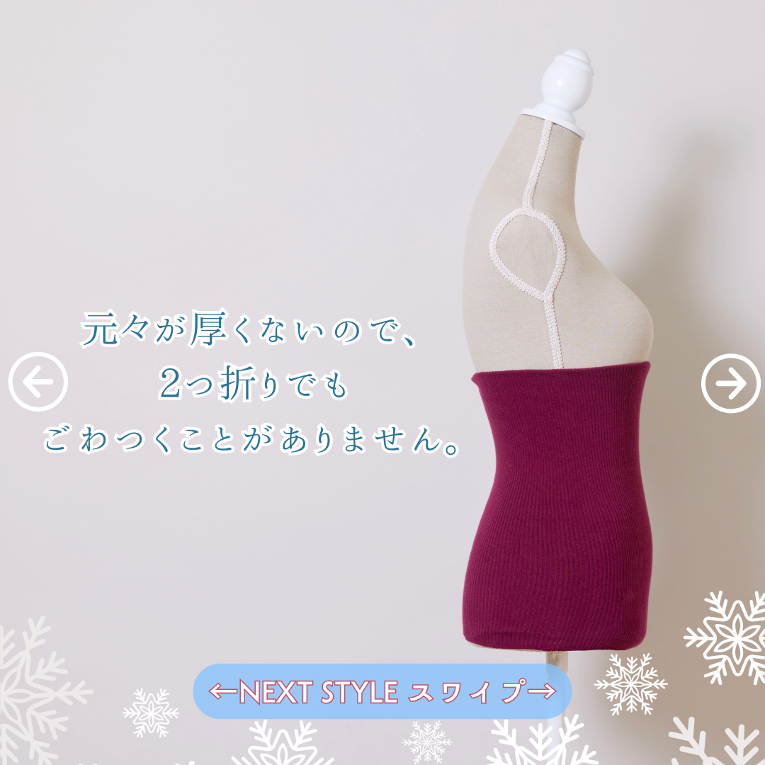 長いと感じる方はぜひ折り込んでつけてみてください。冷えている部分を重点的にサポートいたします。まさに大は小を兼ねる、です。