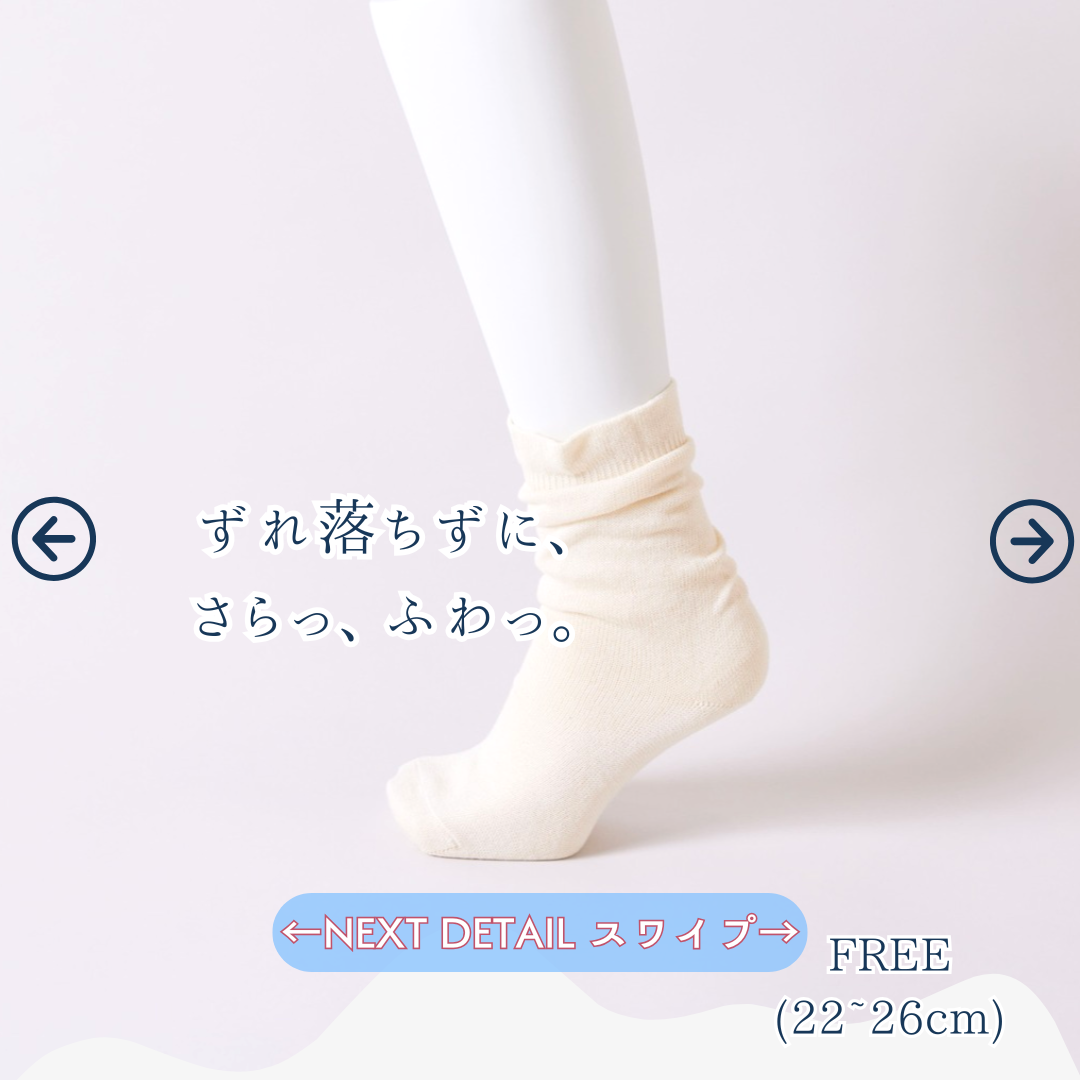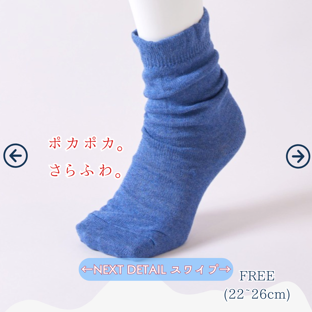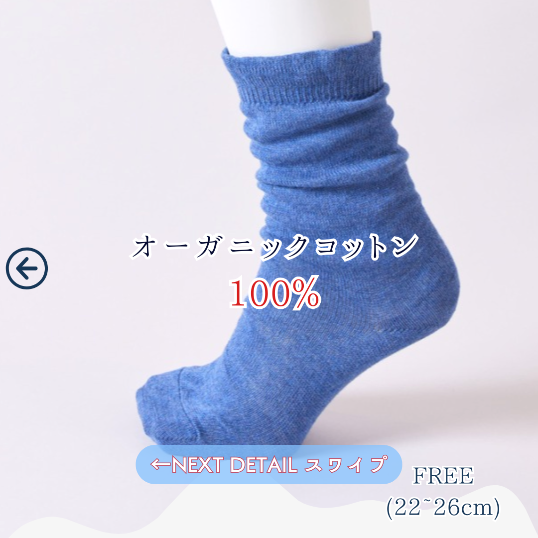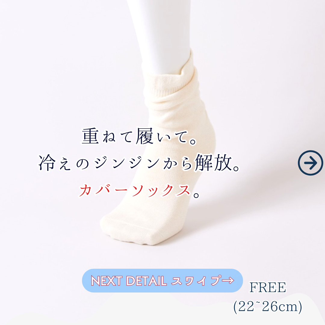 冬の寒さを忘れさせてくれる特別なアイテム《ふゆのさらふわ かさねくつした》が登場!ジンジンする冷えをしっかりと包み込み、オーガニックコットン100%のやさしい肌あたりで一日中快適に過ごせます。心も体も温まるこの冬の必須アイテムは、あなたの足元を優しく守ります。