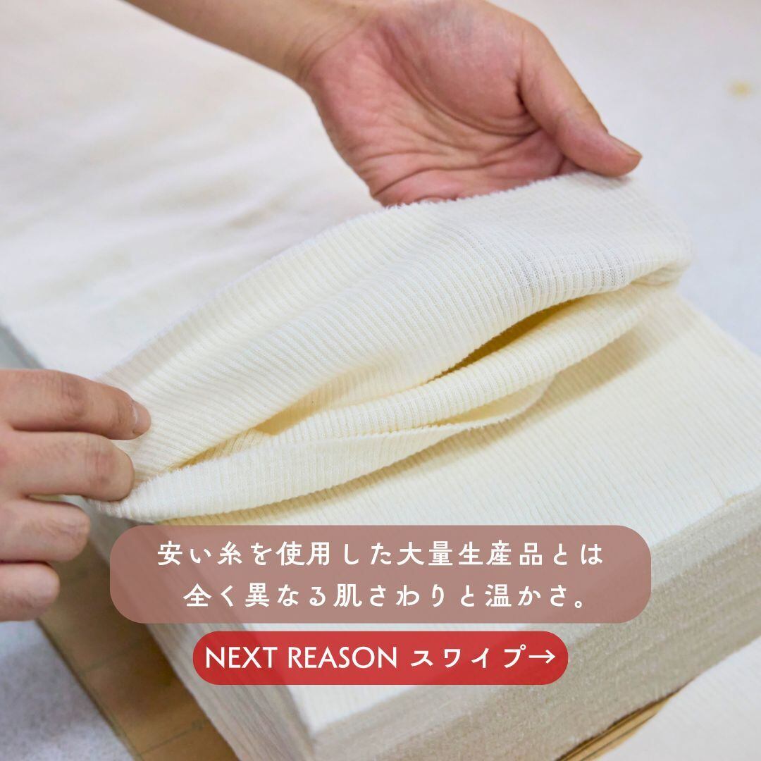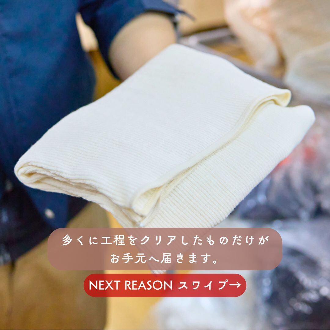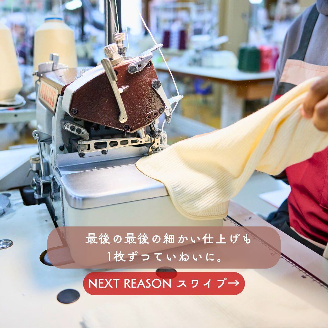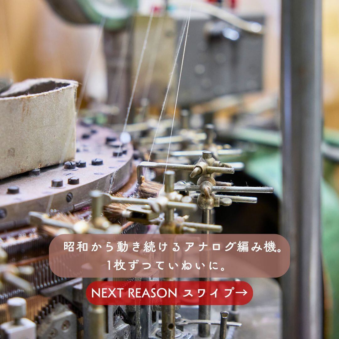 国内に残存する昔ながらのアナログ機械で1枚ずつ編むことをはじめ、縫製、刺繍、そしてパッケージに至るまで全て国内で完結させ高品質を保っているからこその価格とご理解いただければと存じます。