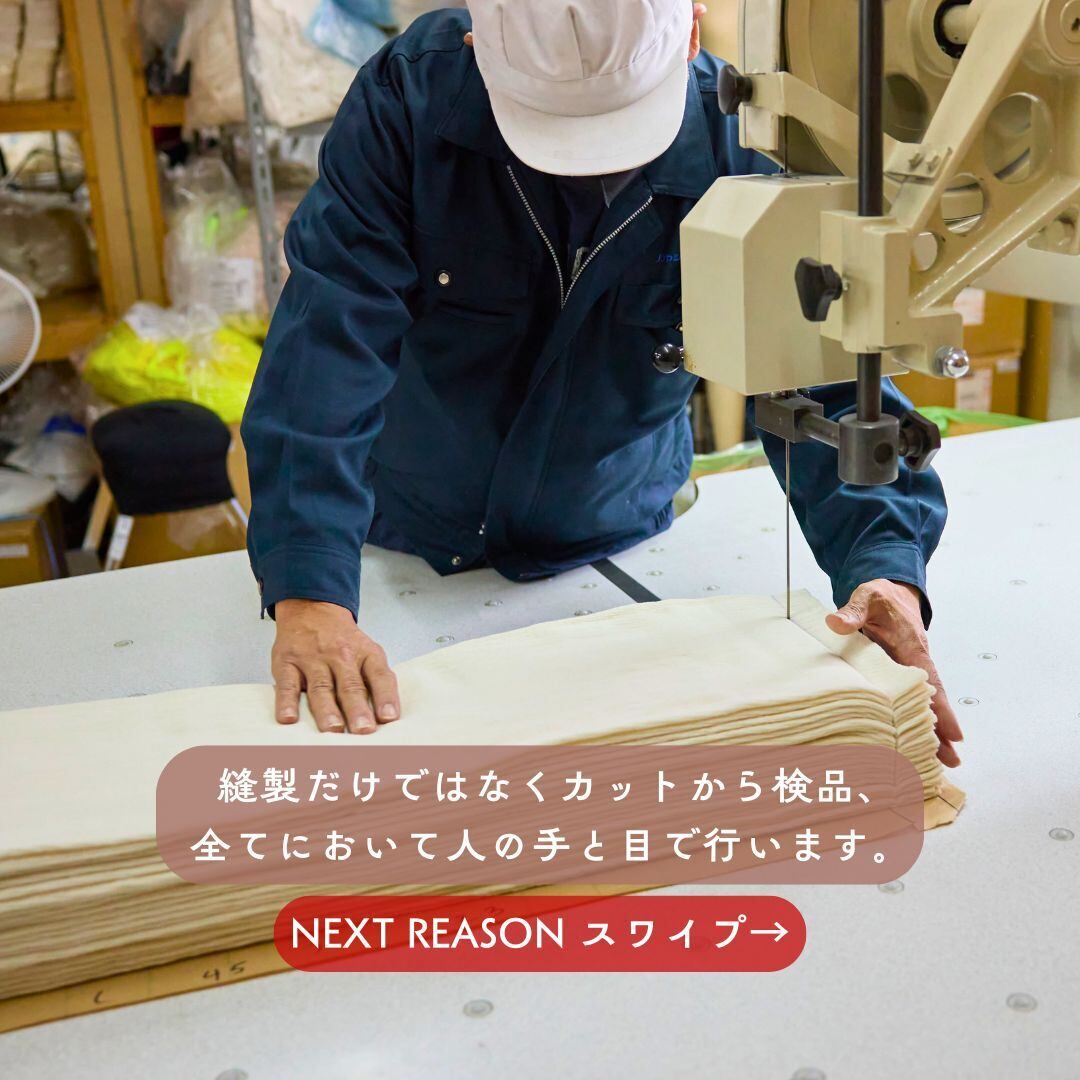 手にしていただいた時、驚きの肌さわりに必ず『もう1枚買っておけばよかった…』と思っていただける自信を持っています。大量生産品とは全く異なる質感はもちろん、大きな満足感もお楽しみいただければ幸いです。