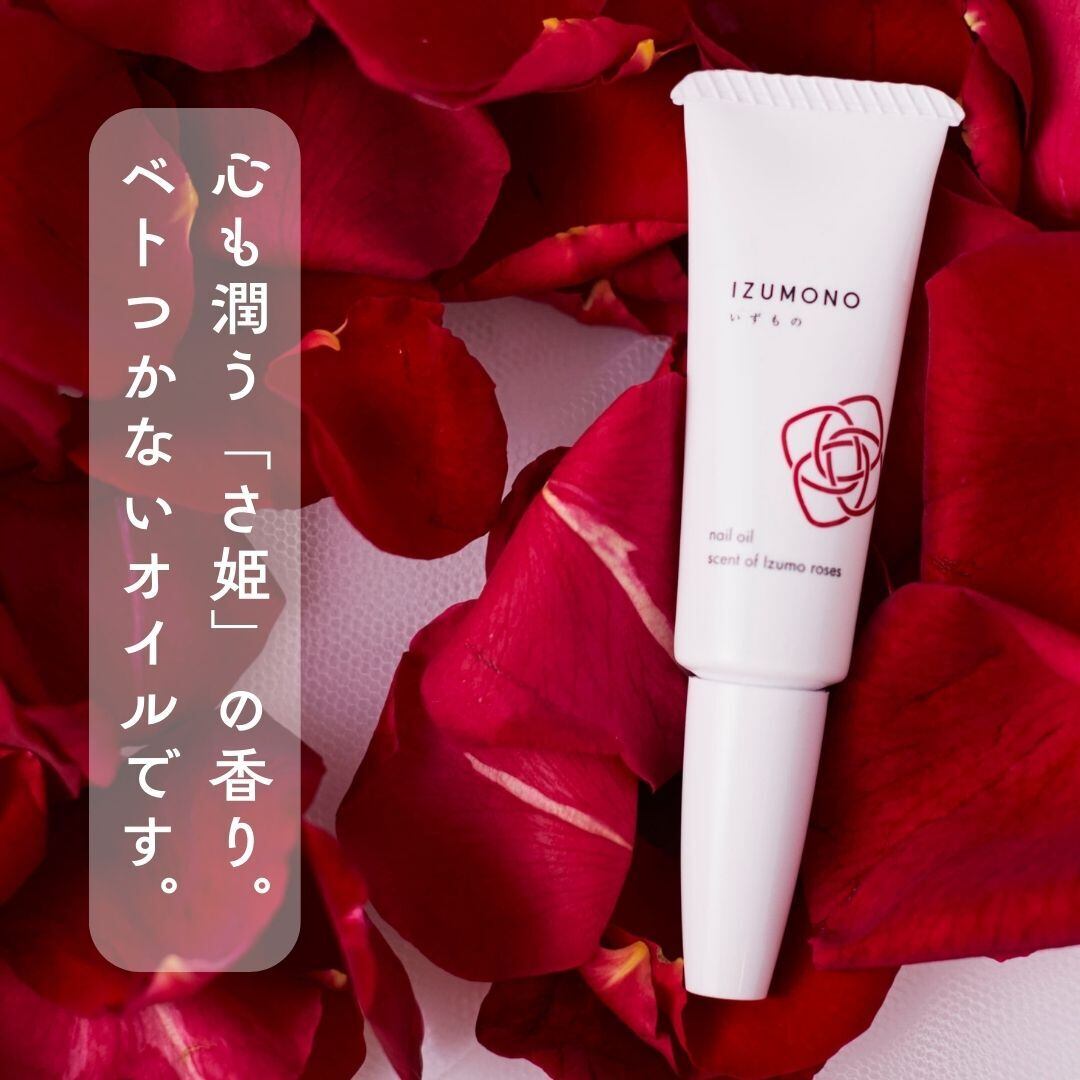出雲にしか咲かない真紅の薔薇「さ姫」。驚くほど大きな花から少しだけ採取できるエキス配合の心地よくお淑やかな香りの大人のネイルオイルです。気になる甘皮のカサカサが驚きのつるつるしっとりに。手がべとつかぬよう、筆タイプで仕上げています。【日本製】