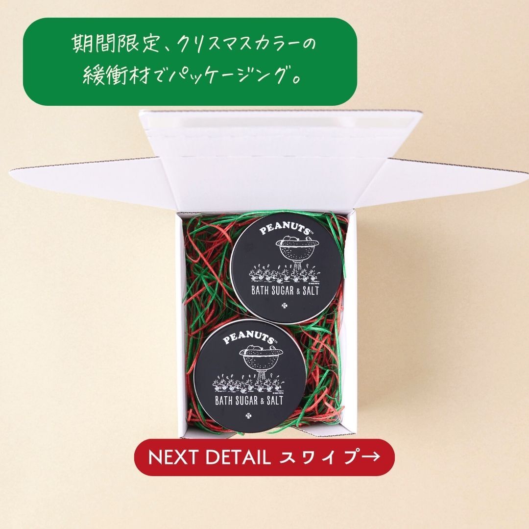 ぜひ、PEANUTSバスシュガー&ソルト【X'mas 限定デザイン】で特別なバスタイムをお楽しみください。