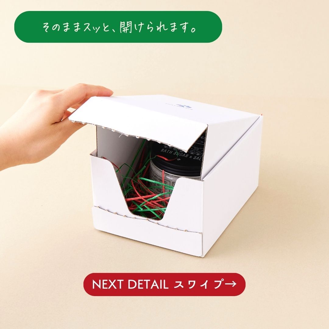 クリスマス限定の緩衝材にてお届けいたします。ご自身用としてはもちろん、ぜひ大切な方へのプレゼントにもご利用くださいませ。