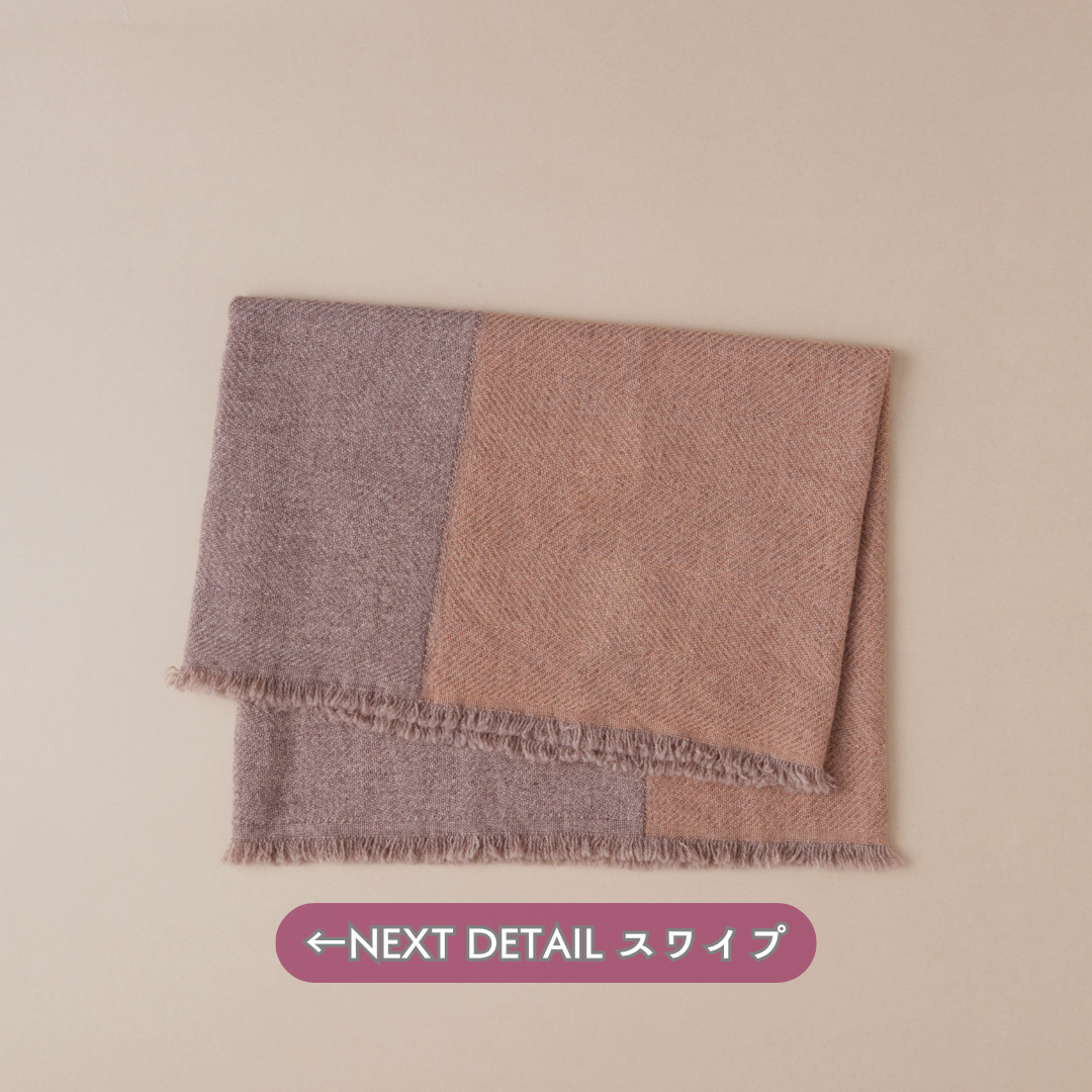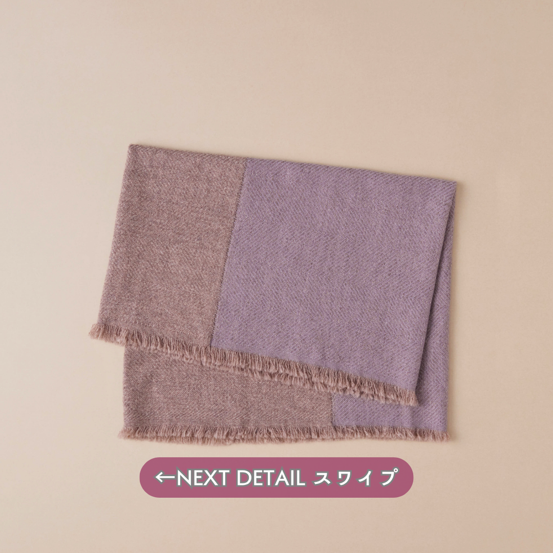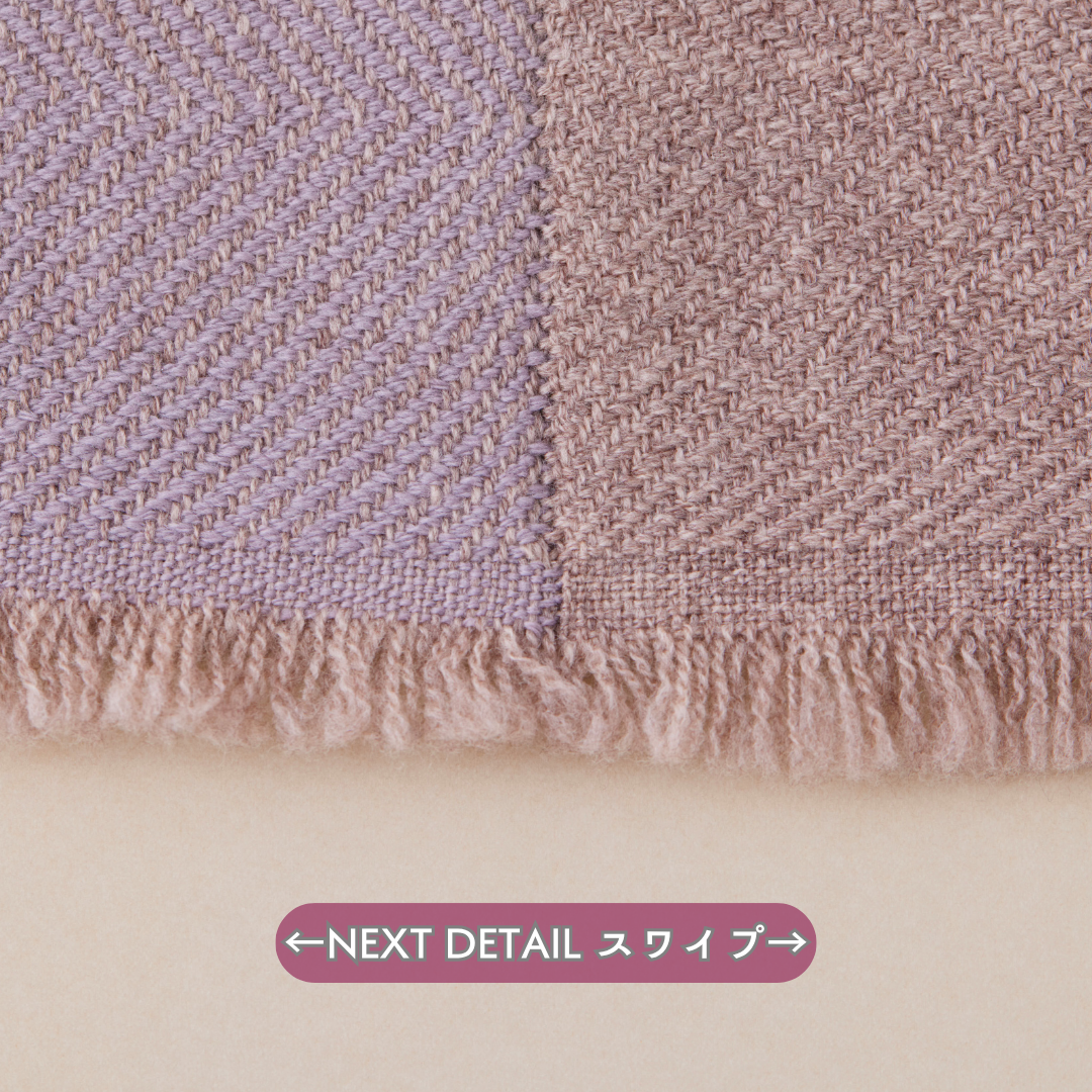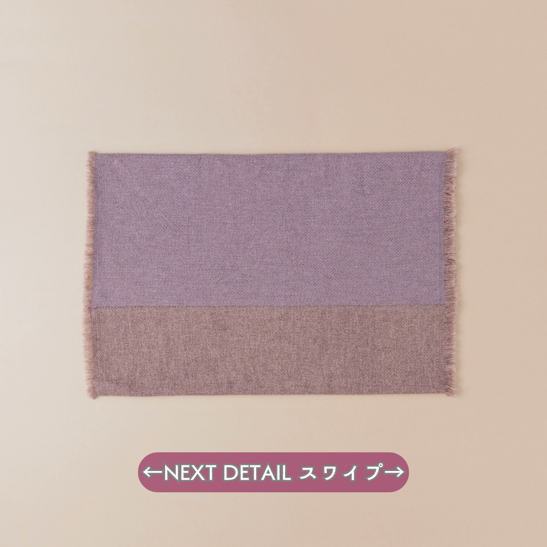藍染色に少し紅色を混ぜた淡い紺色とブラウンのツートーンです。鮮やかすぎず秋冬らしく抑えめに。大人の穏やかさ感じる色合い。