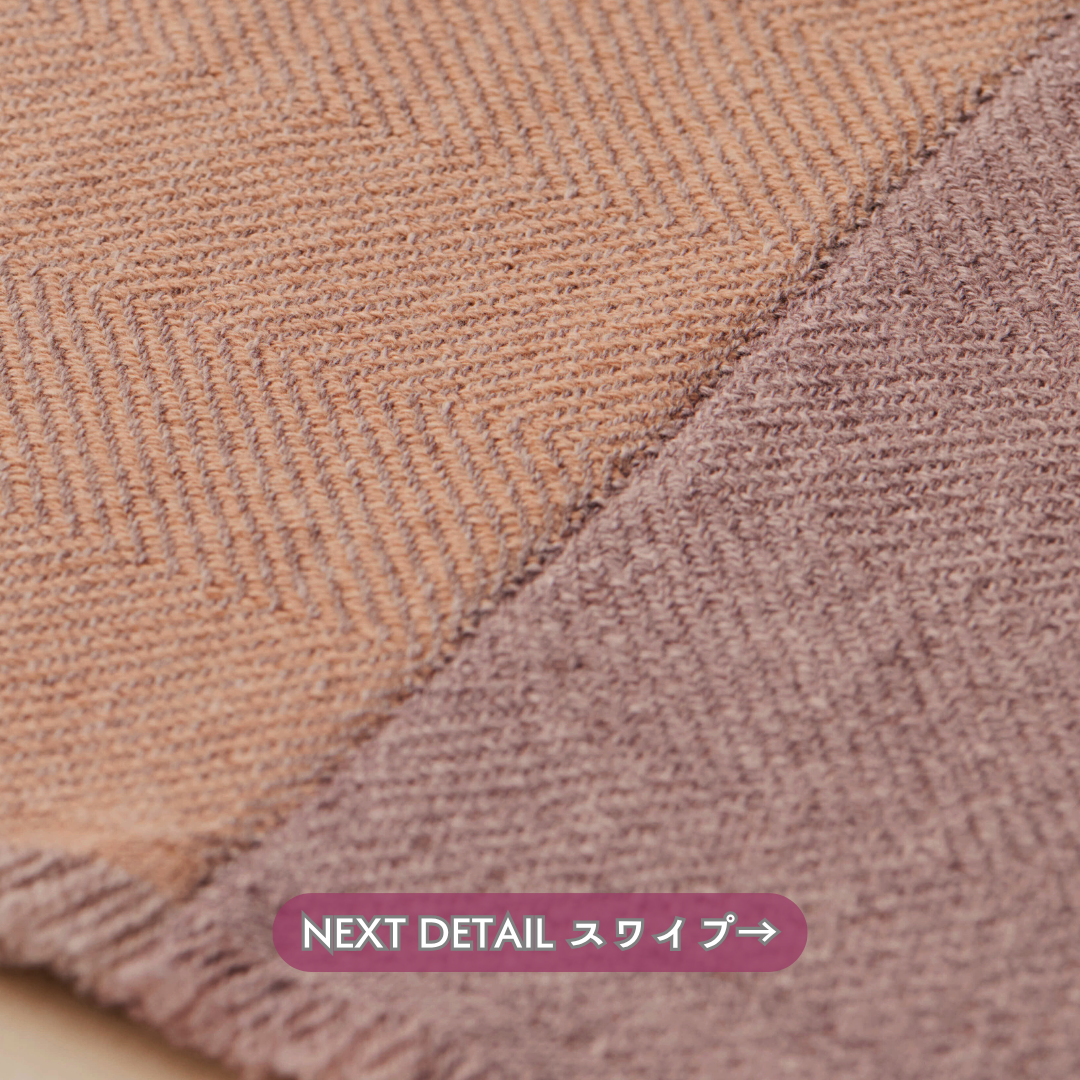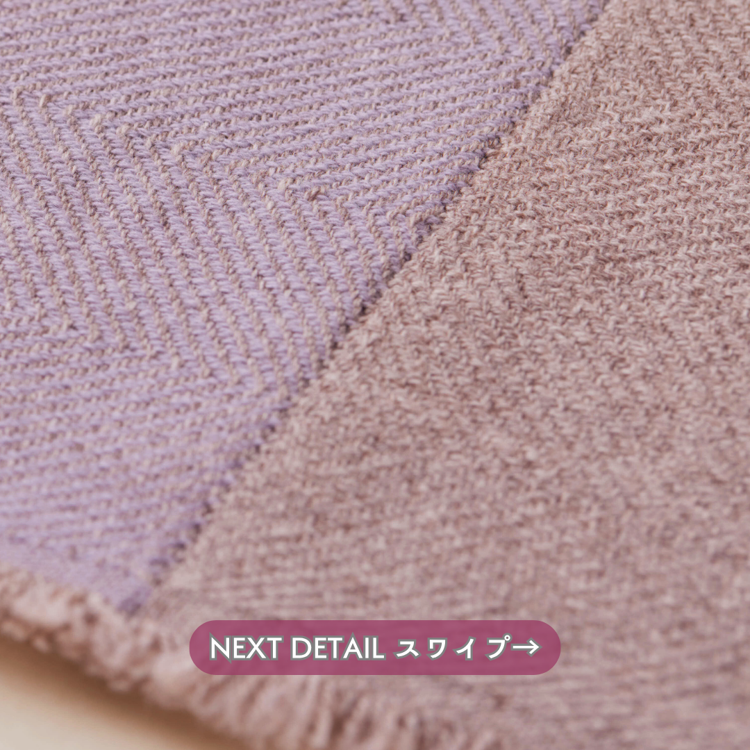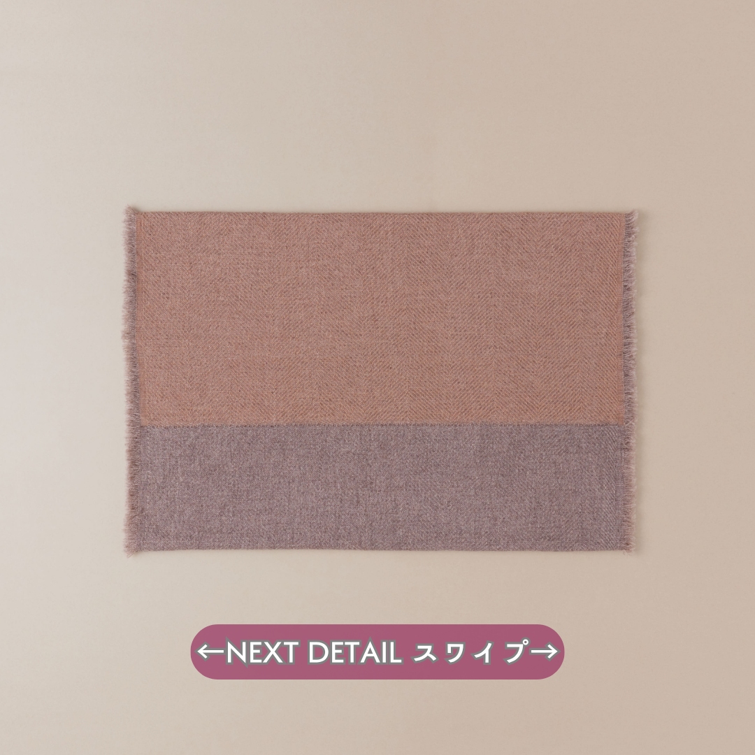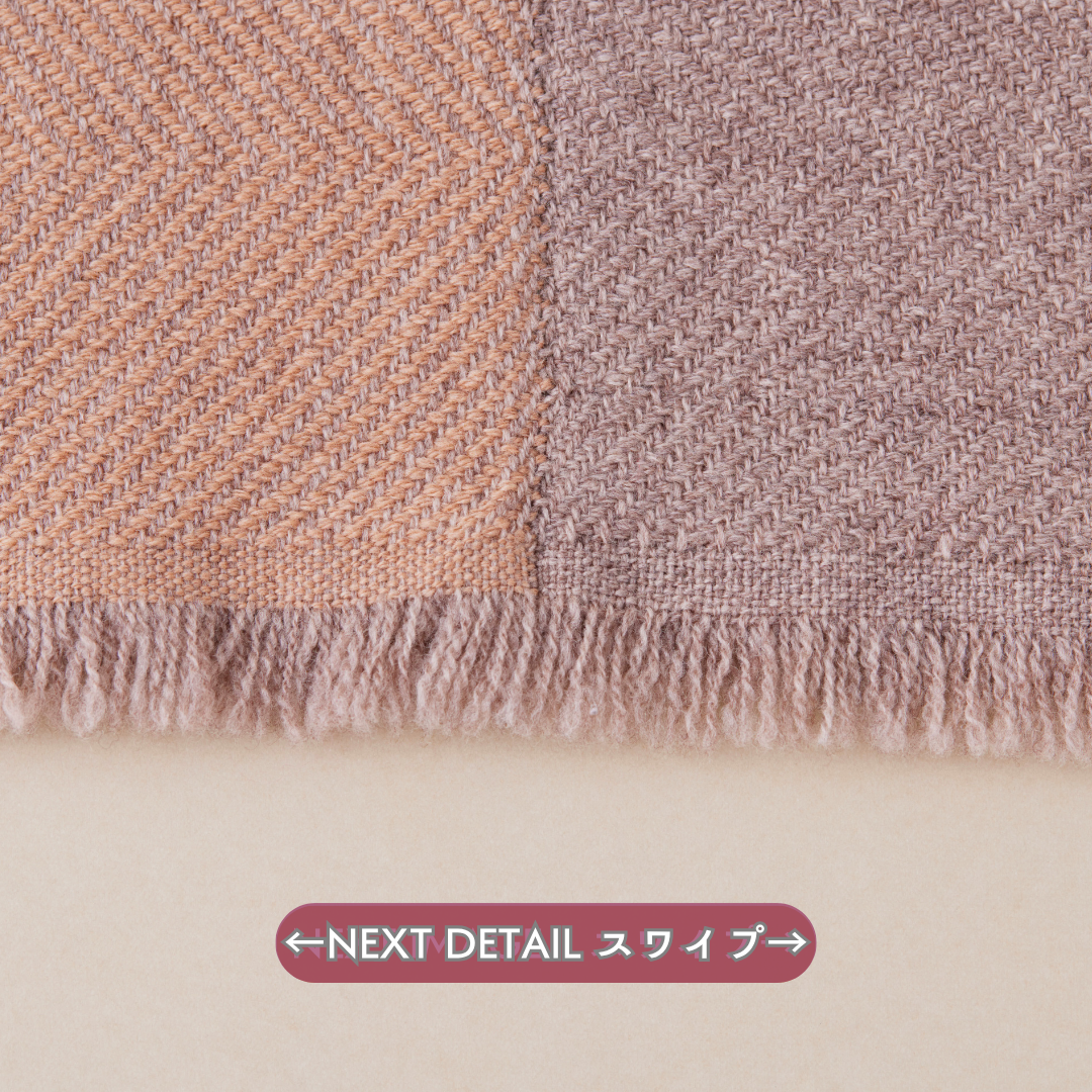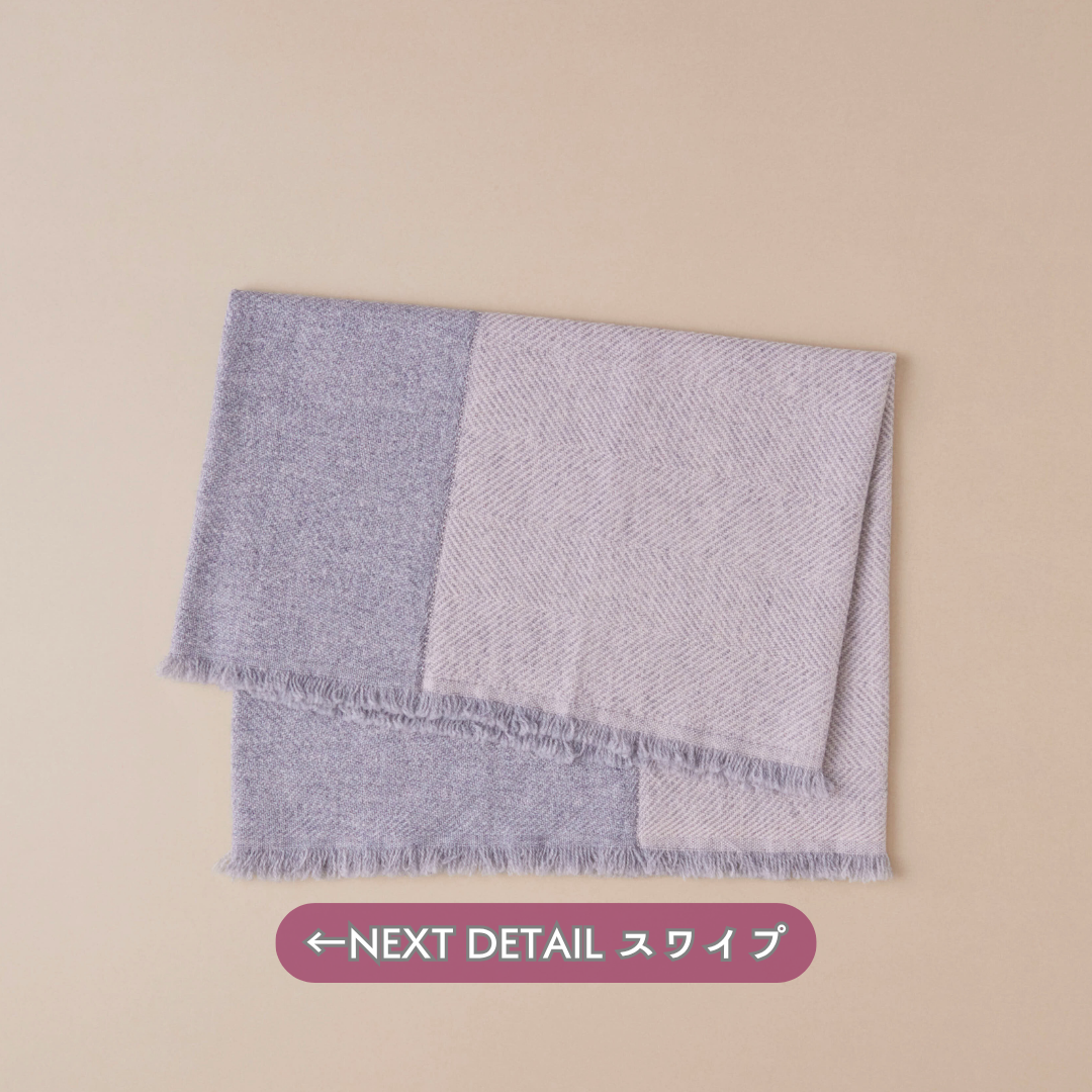 藍染色に少し紅色を混ぜた淡い紺色とブラウンのツートーンです。鮮やかすぎず秋冬らしく抑えめに。大人の穏やかさ感じる色合い。