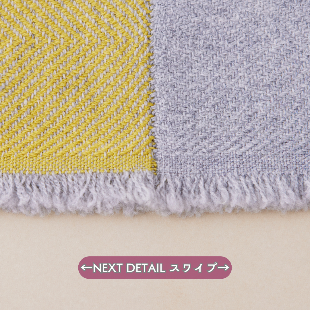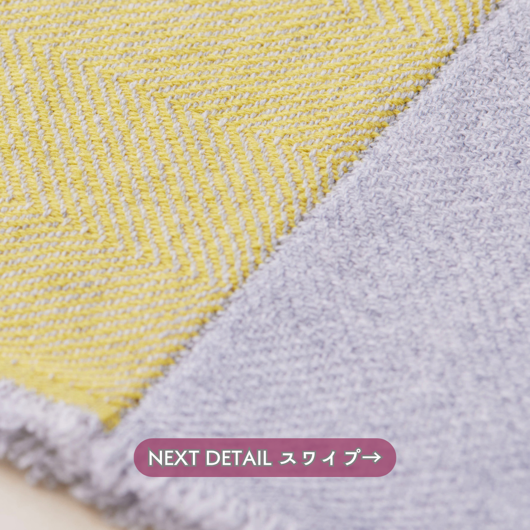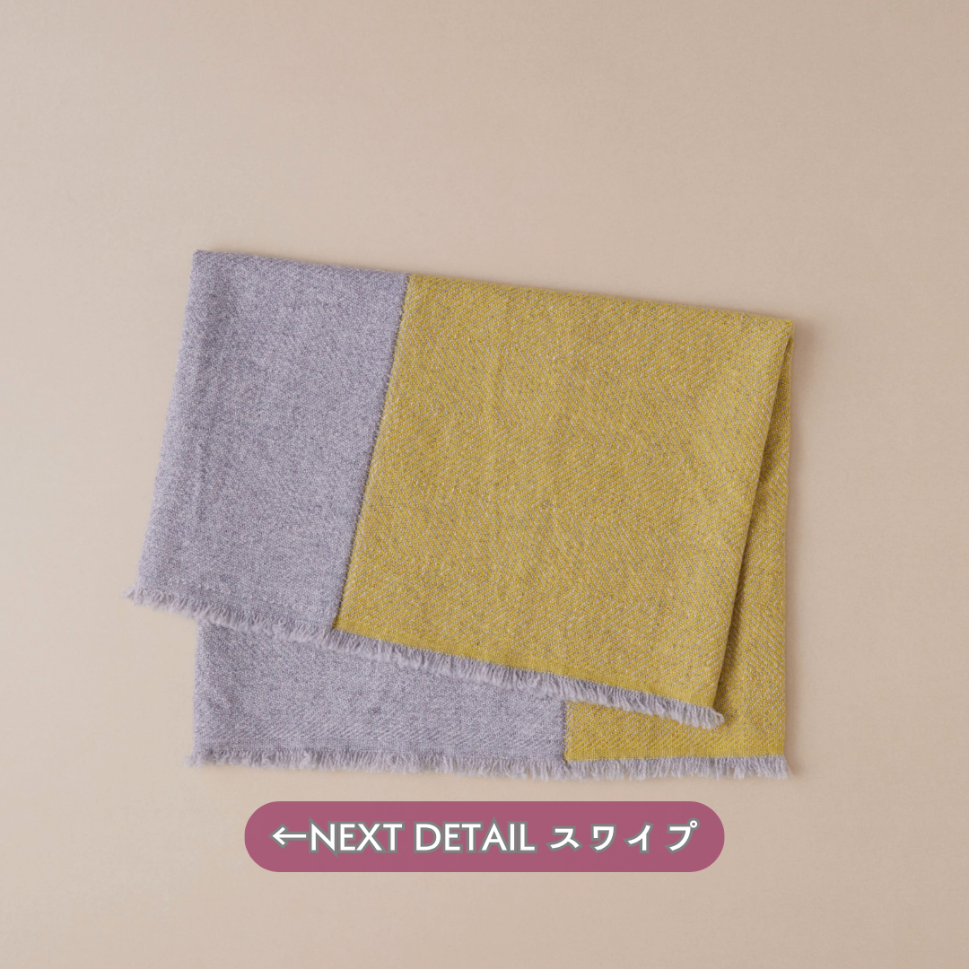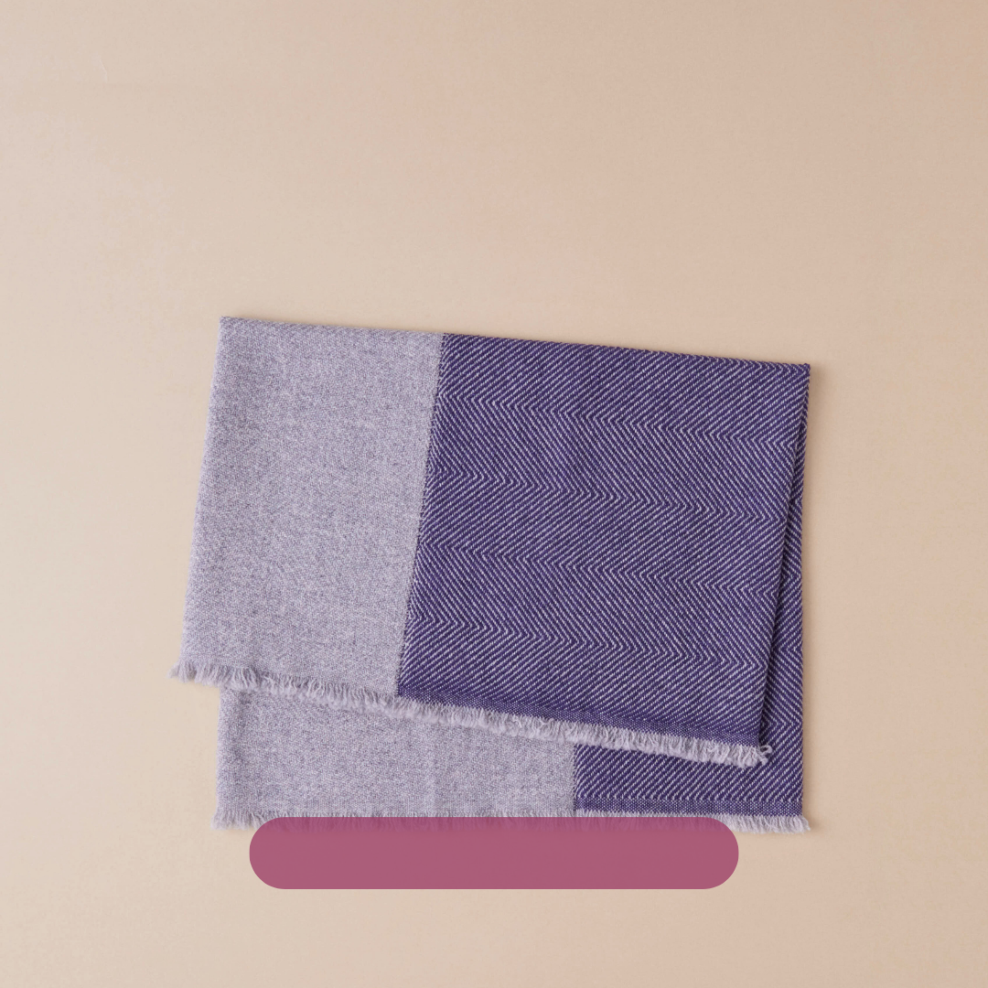 藍染色に少し紅色を混ぜた淡い紺色とブラウンのツートーンです。鮮やかすぎず秋冬らしく抑えめに。大人の穏やかさ感じる色合い。