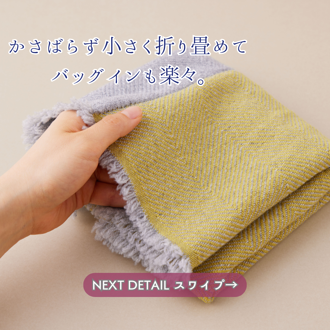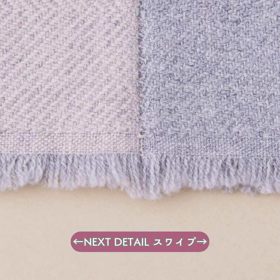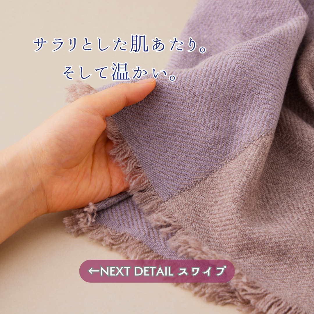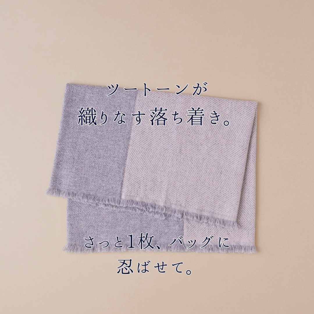 極細ウールをていねいに織り上げた、やわらかい肌さわりが特徴のスヌード。