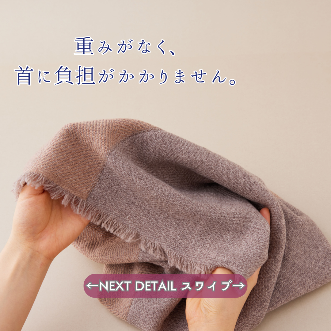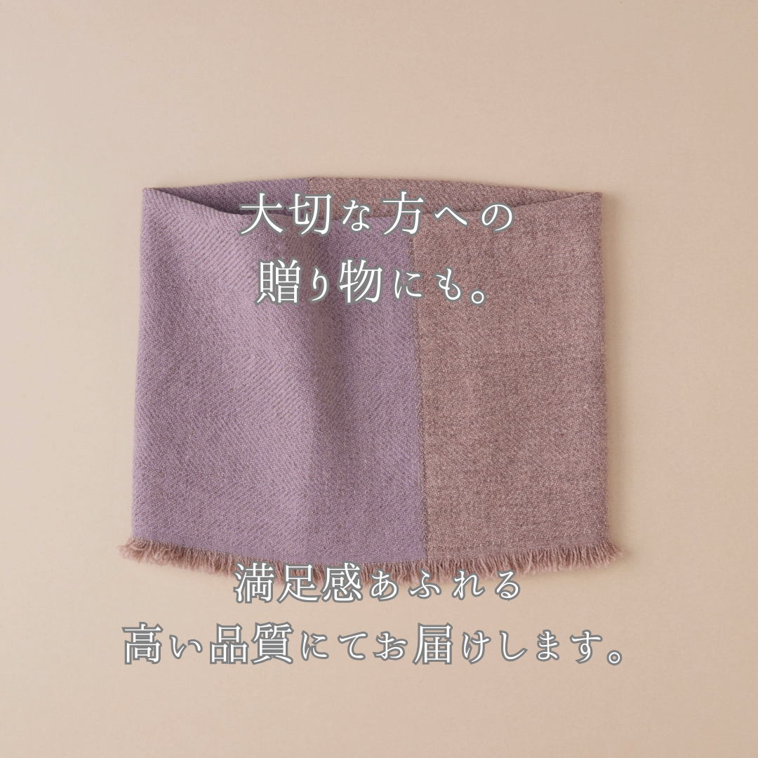 昭和から動き続けるアナログ機械と匠の技術の融合にによって織り上げられたこのスヌードは、誰もが納得の高品質。厳選されたカシミヤクラスの極細ウールを使用しています。日本製ならではの美しさと信頼性をお楽しみください。