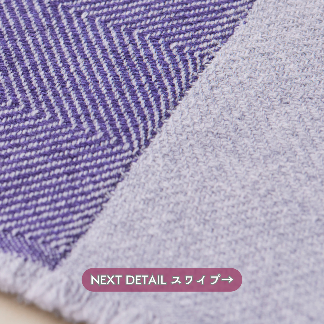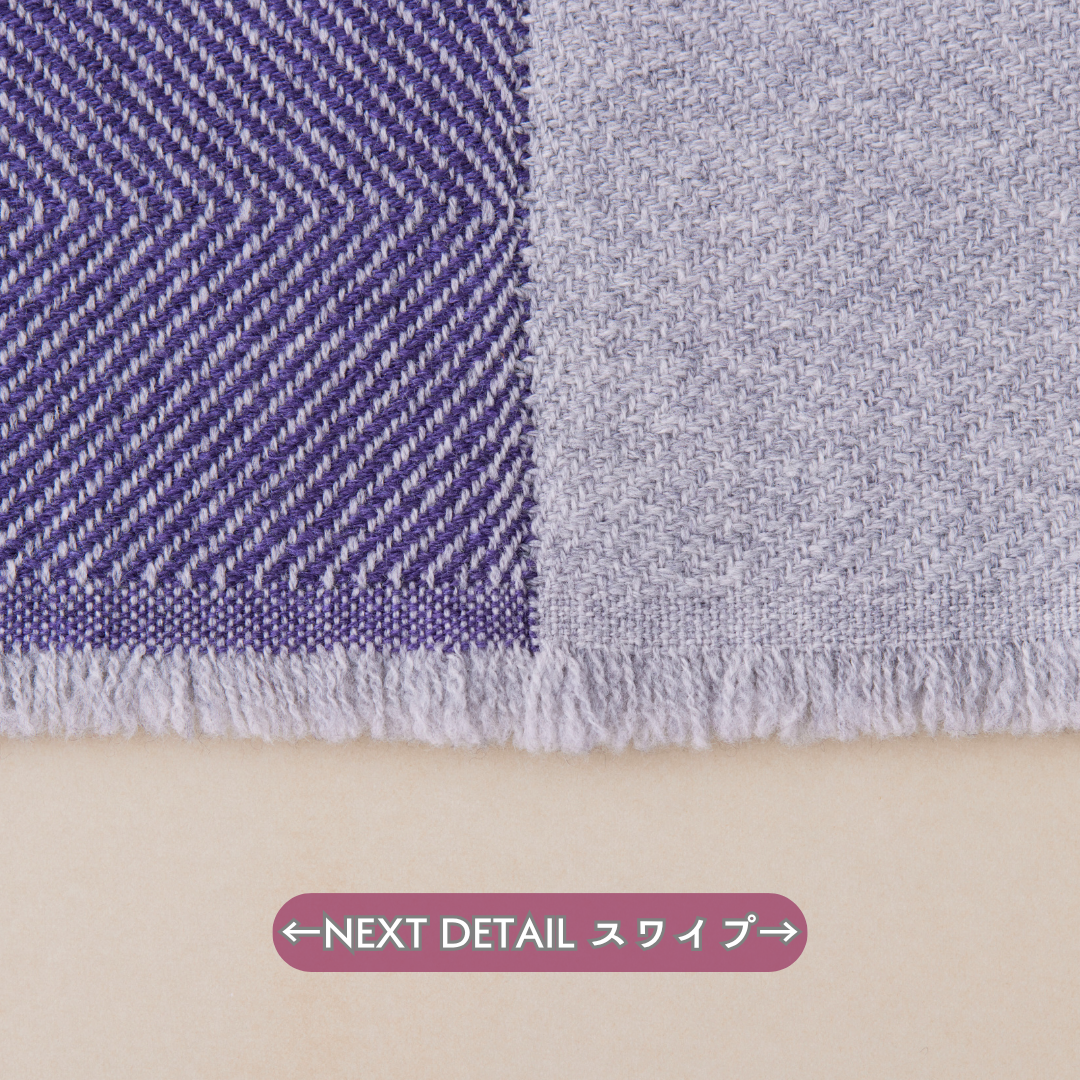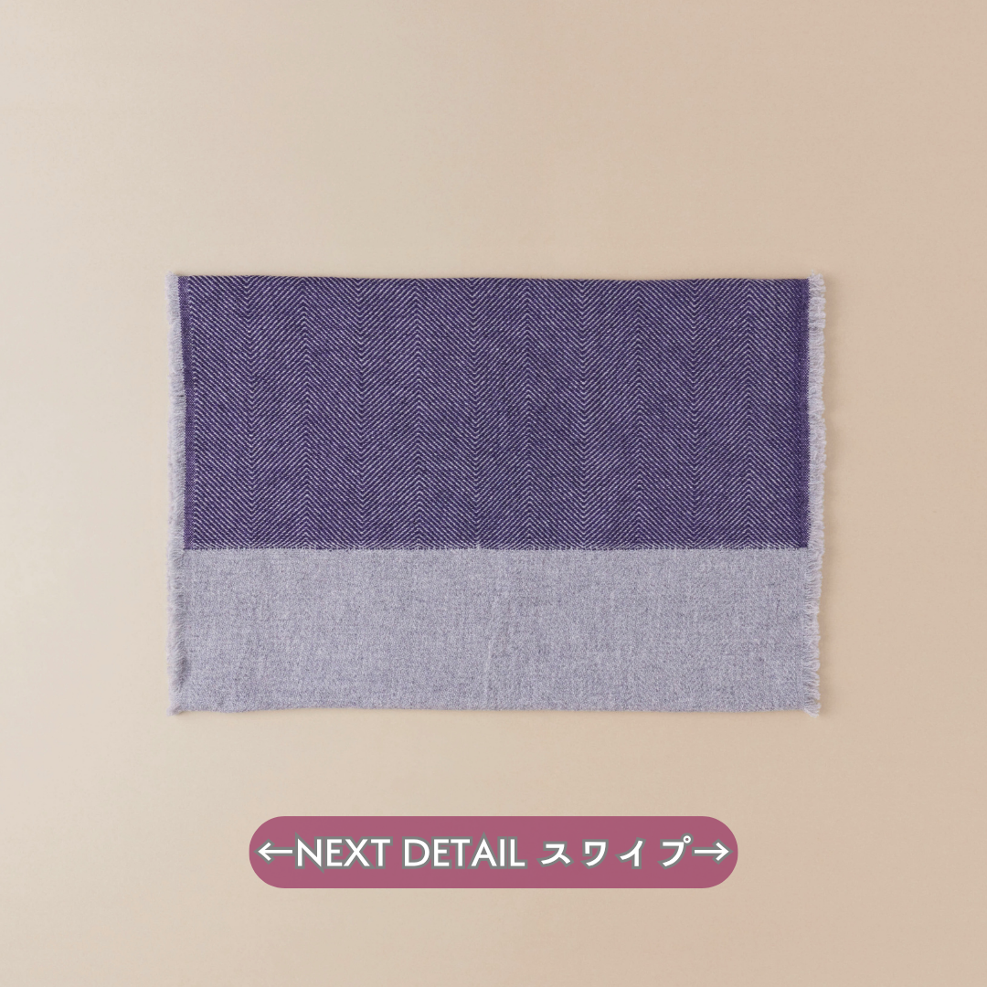 大人の落ち着きを感じる紫とグレーのツートーン仕上げです。少し濃いめのカラーが首元を引き締めてくれます。