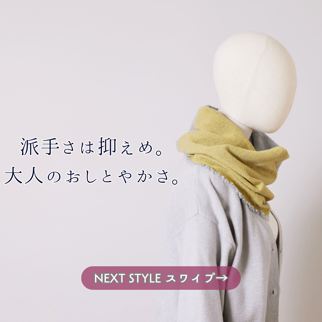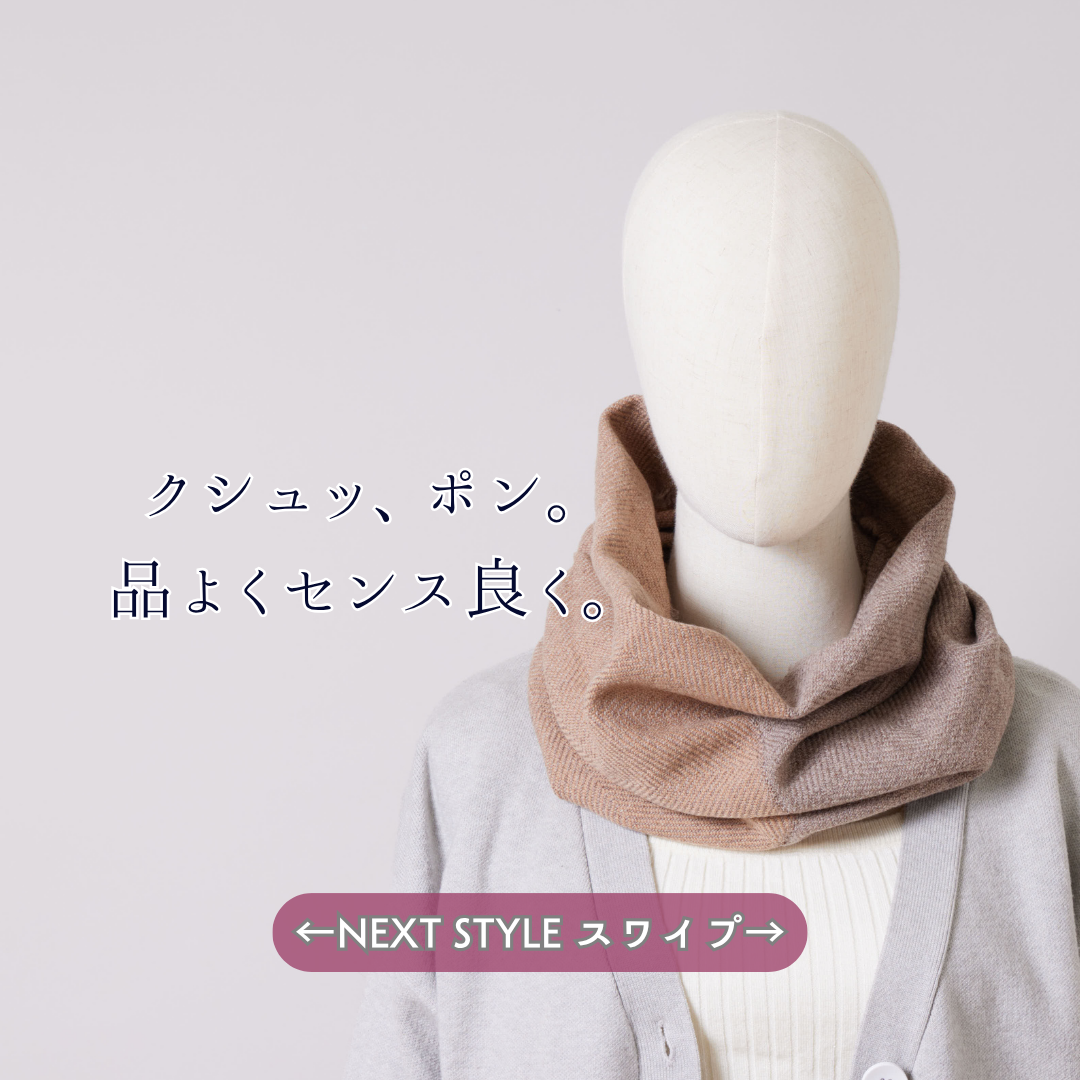 このスヌードがあなたの着こなしや気分を一段と素敵に彩りますように。ぜひ、お手元にお迎えください。