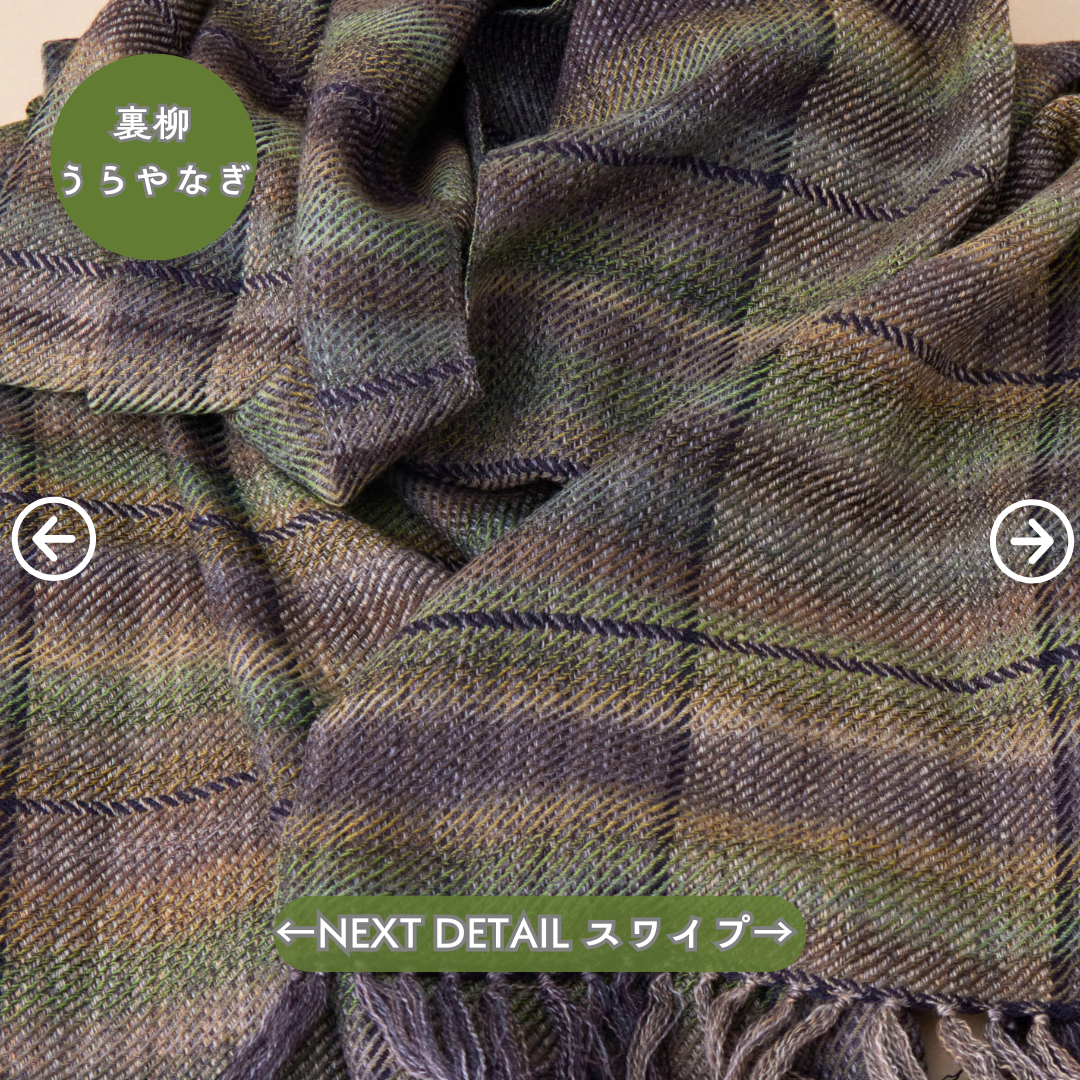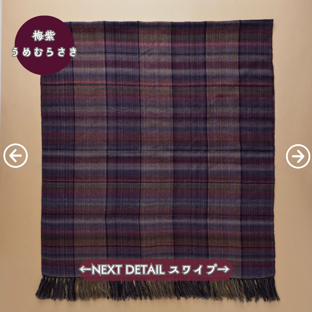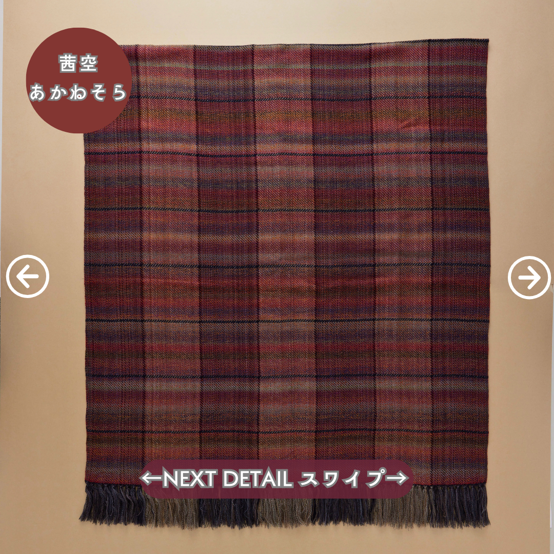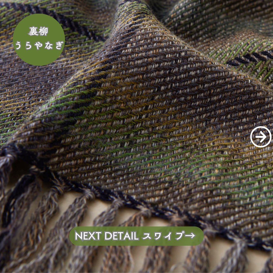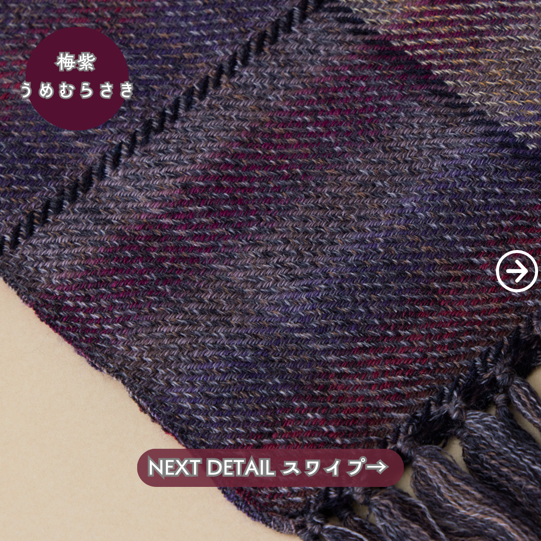 この世にたくさんのショールあれど、ウールでここまでなめらかなものはないと自信を持っております。そしてただ単に「単色の糸」を織り上げたものではなく、1本1本細かく染めた絣(かすり)染め糸を織り込んだグラデーション。