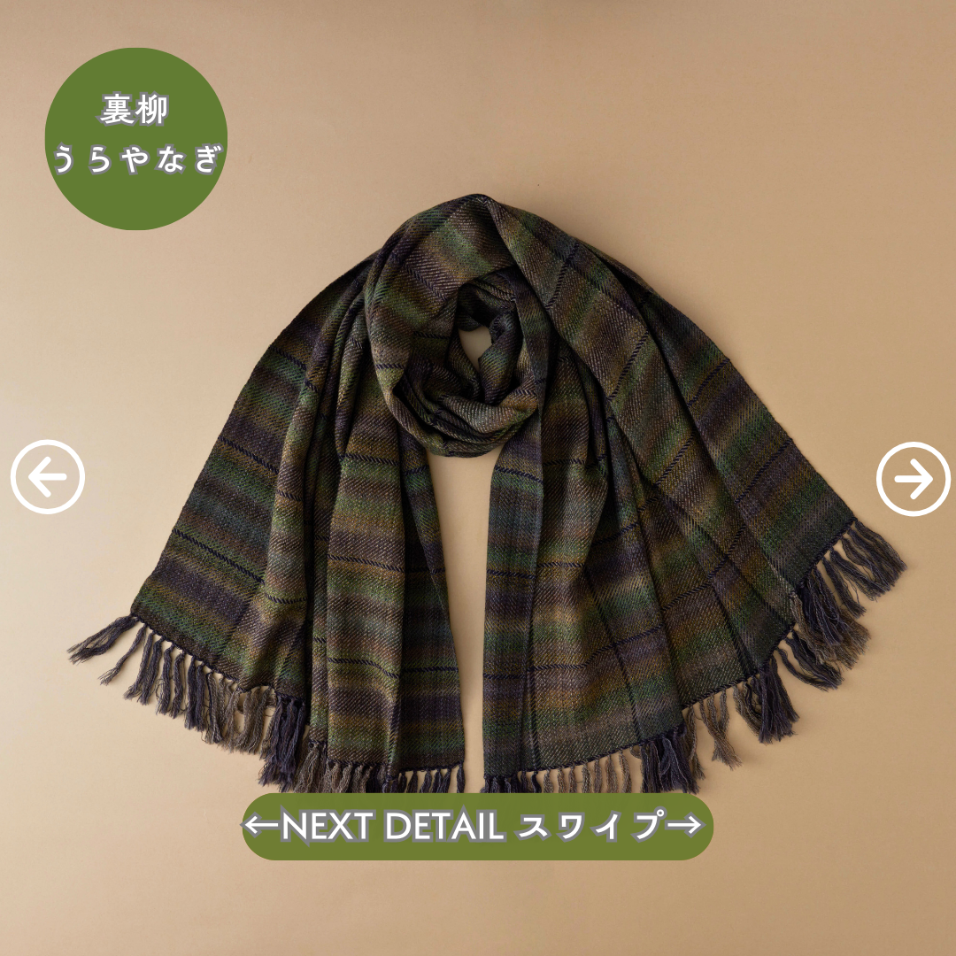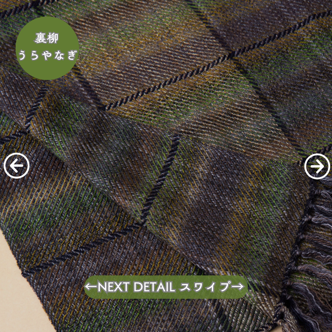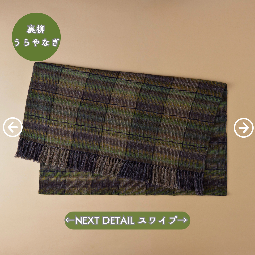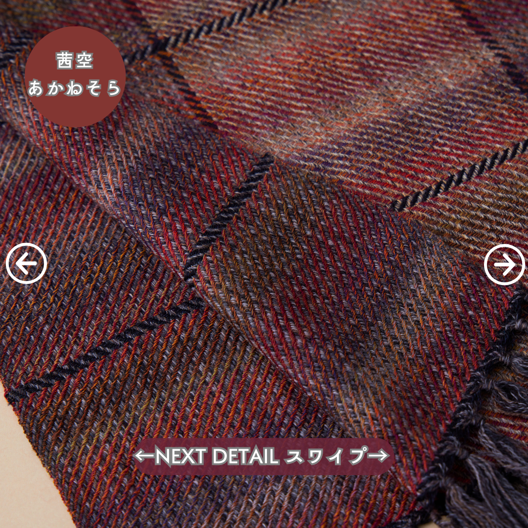 この世にたくさんのショールあれど、ウールでここまでなめらかなものはないと自信を持っております。そしてただ単に「単色の糸」を織り上げたものではなく、1本1本細かく染めた絣(かすり)染め糸を織り込んだグラデーション。