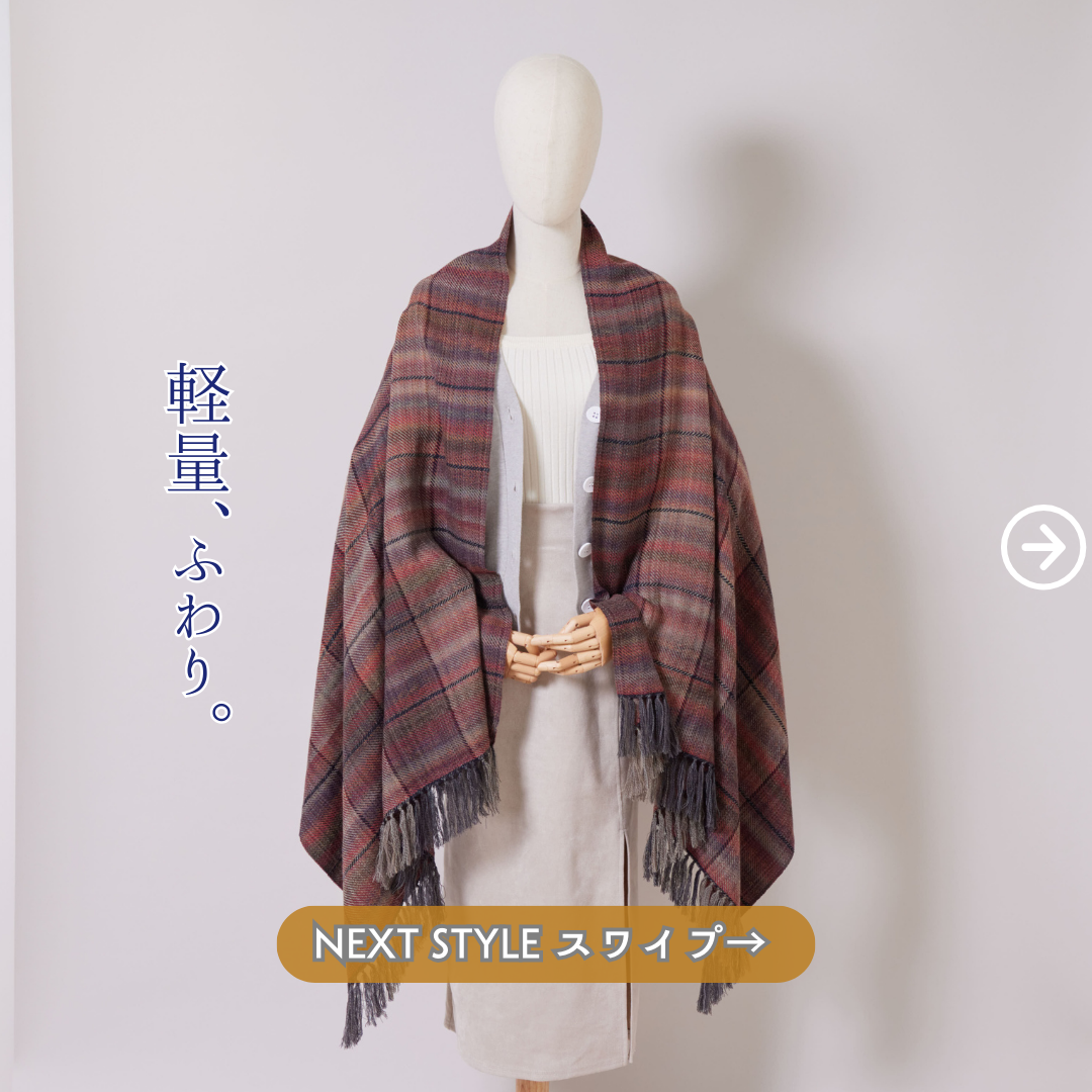 ふわりとまとえるなめらかショールは、あなたのコーディネートに優雅な彩りを添えること間違いなし。ぜひ、お手元にお迎えして上質な気分を味わってください。
