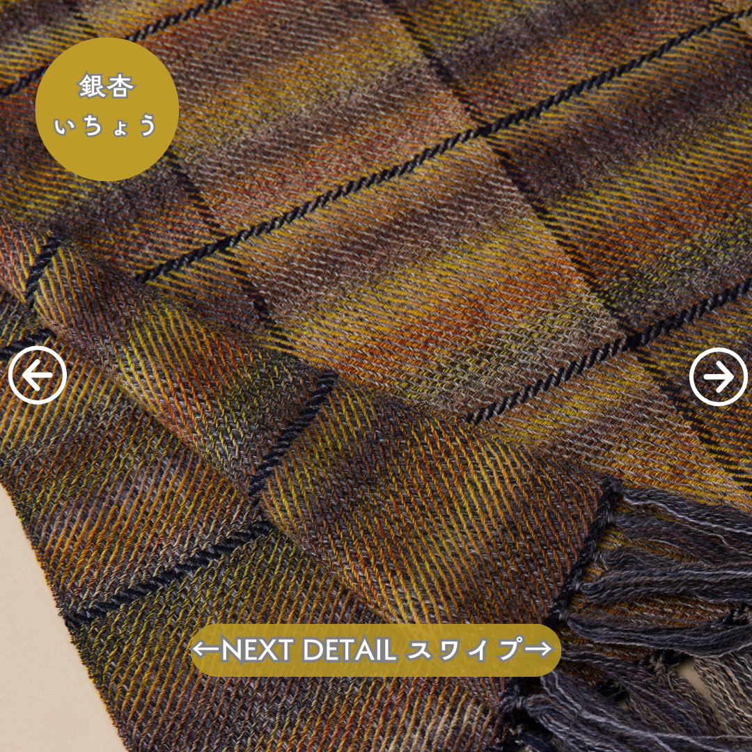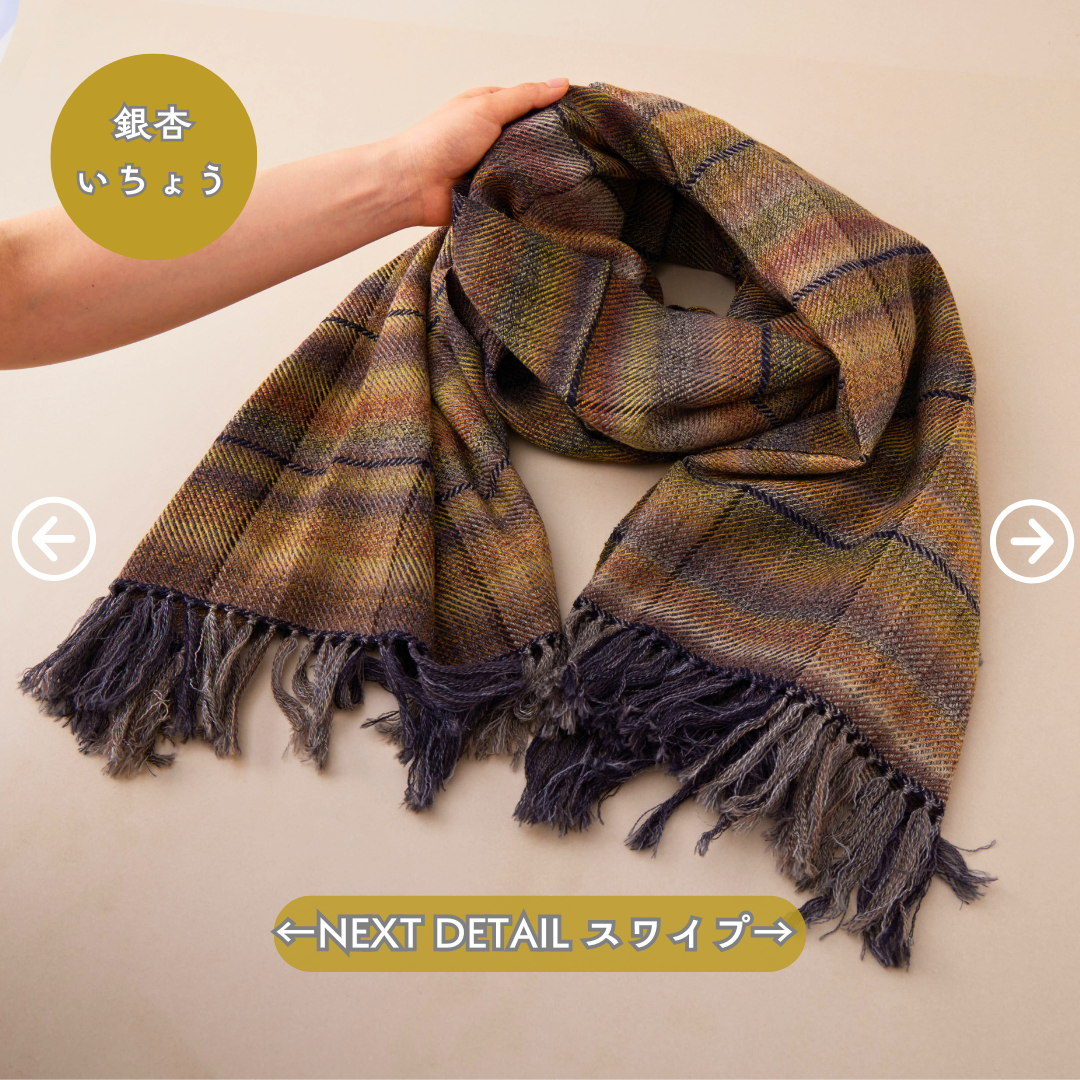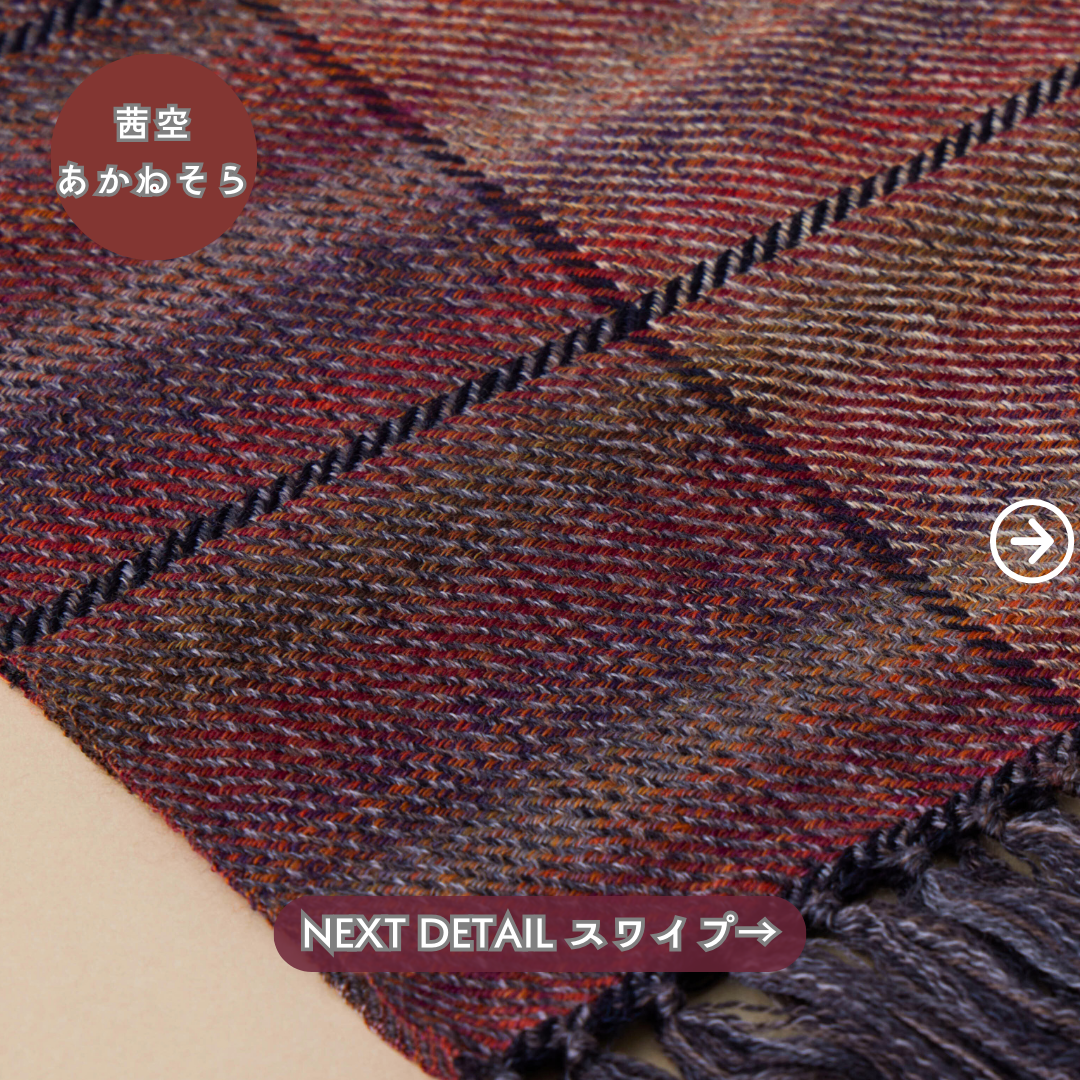 その糸を目視しながら1枚ずつていねいに織り上げ、とても鮮やかなグラデーションに。表裏一体、表も裏も同じクオリティ。