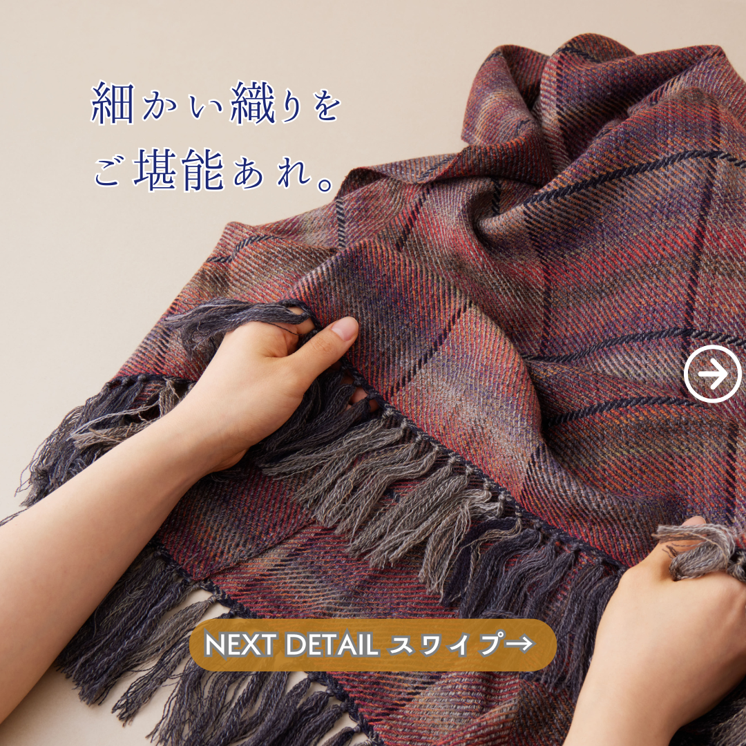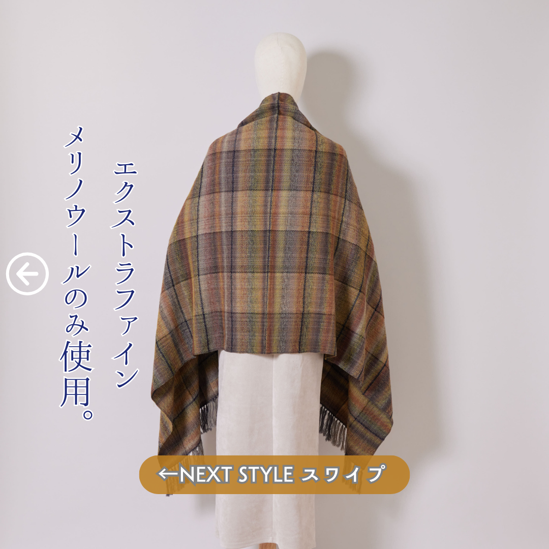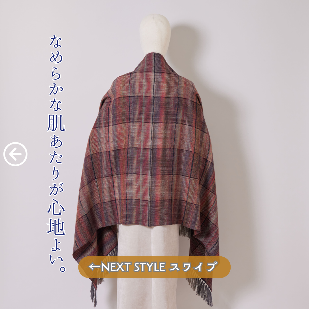 秋冬のファッションへの追加アイテムととして、大活躍いたします。カシミヤのような高級ウールのなめらかさ、軽さをご堪能ください。