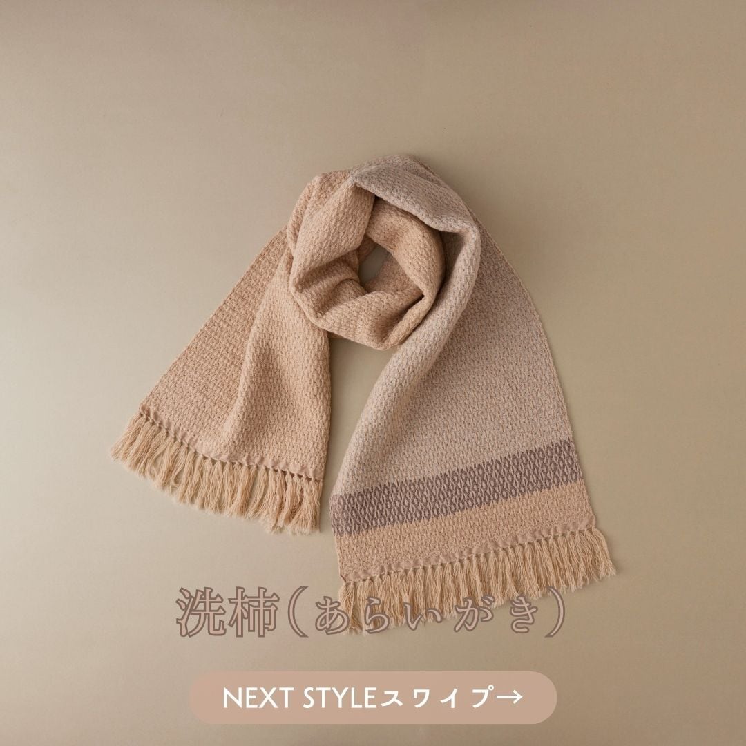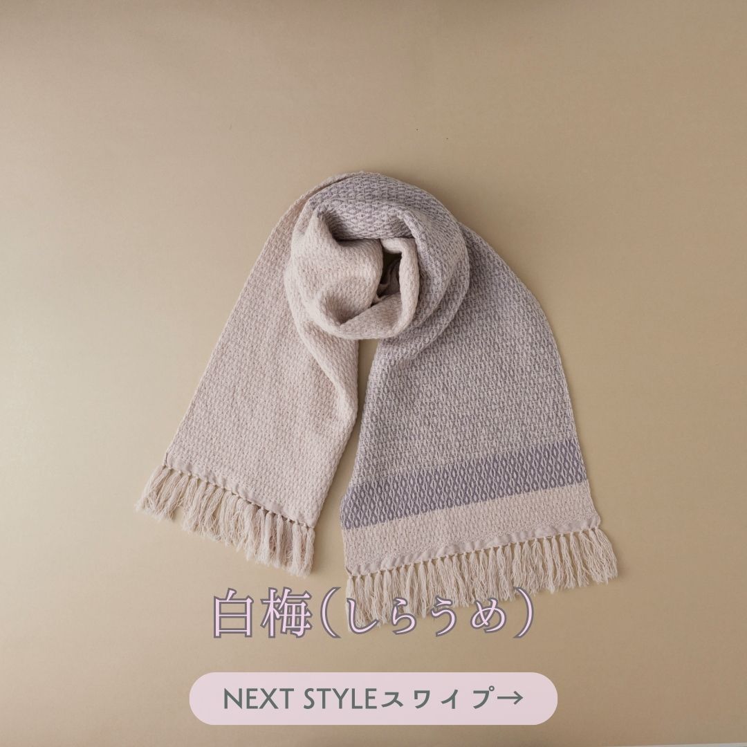 この秋冬、毎日のコーディネートにぴったり。【なめらかシンプル やわらかマフラー〜◇(しかく)〜】が新登場です。極細ウール100%のみを使用しシンプルなカラーとダイヤパターンデザインが特徴です。