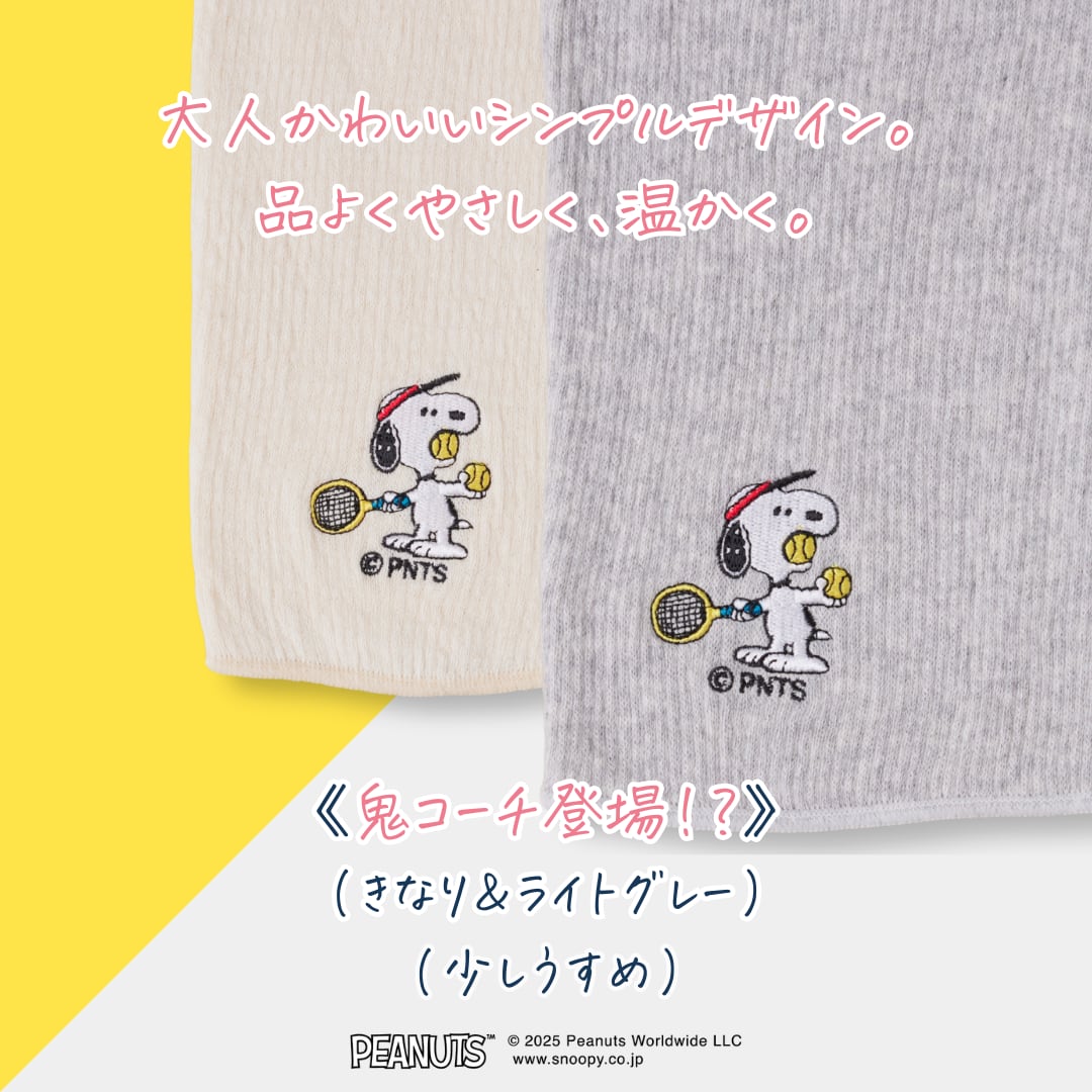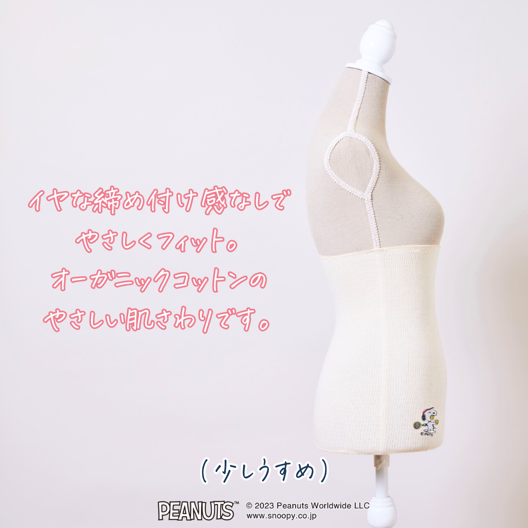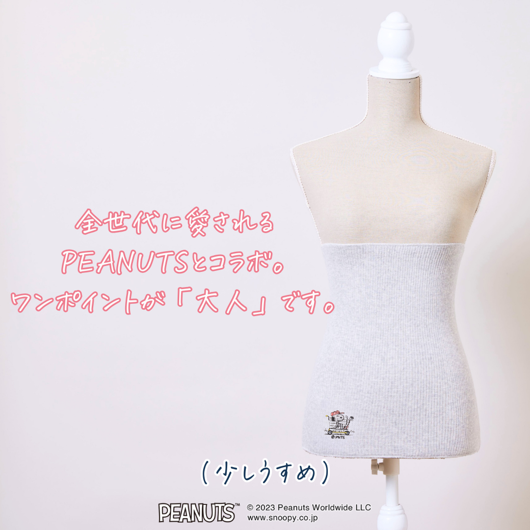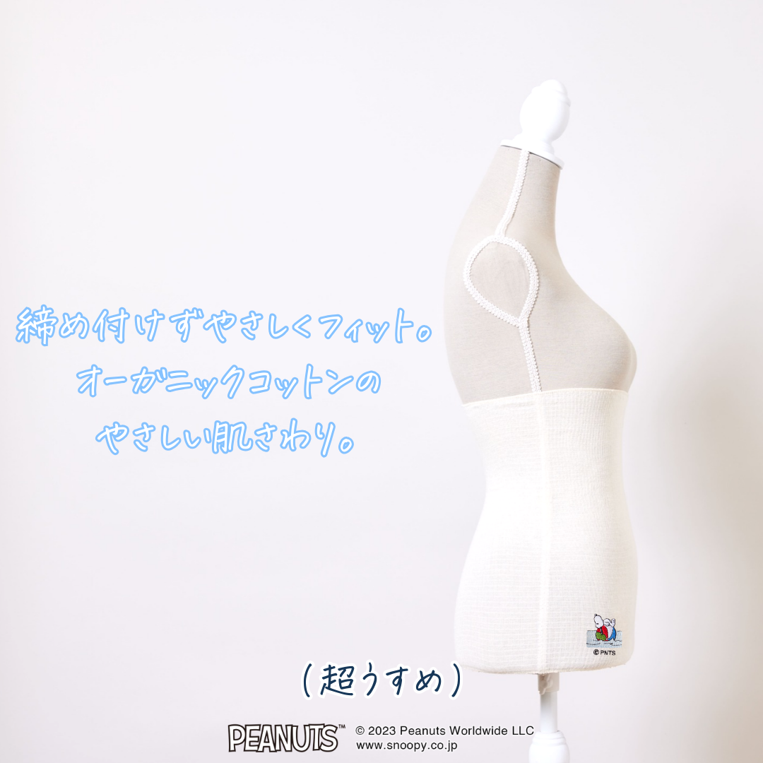 春先の朝晩の冷えにもぴったり。オーガニックコットンを《少しうすめ》に編み込んでいます。柔らかな肌さわり、締め付け感がなく、冷えた体をやさしくサポートします。PEANUTSデザインをワンポイントの刺繍であしらい、非常にシンプルで品があるデザインに仕上げています。
