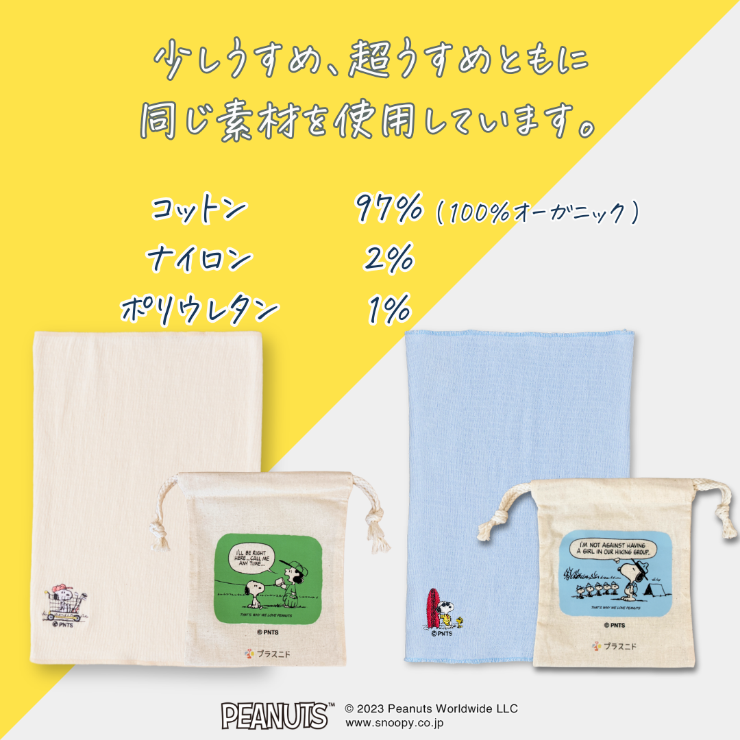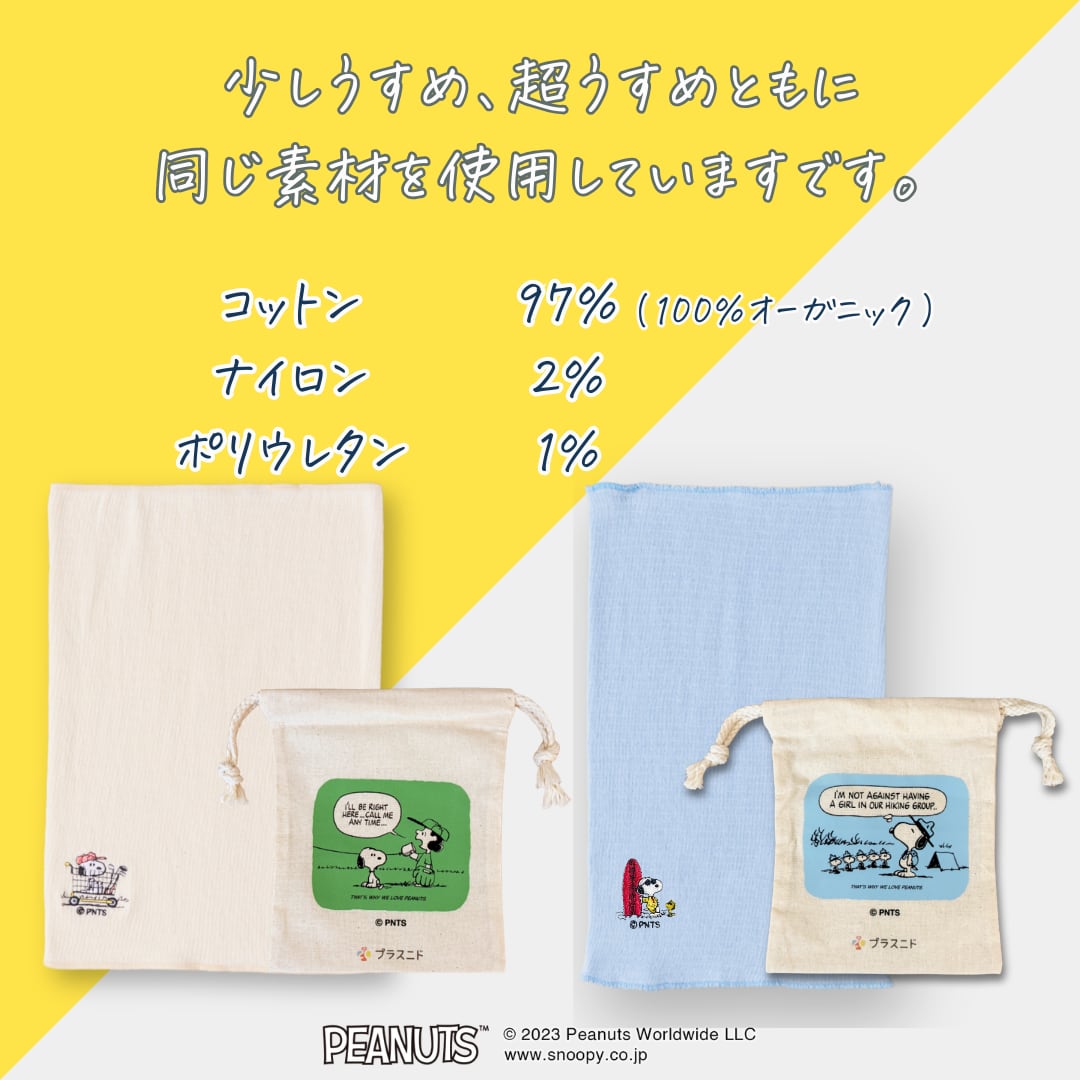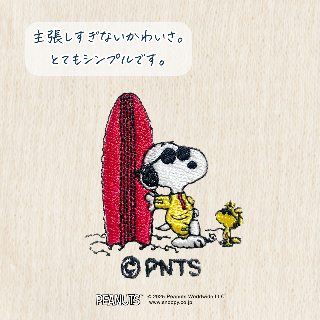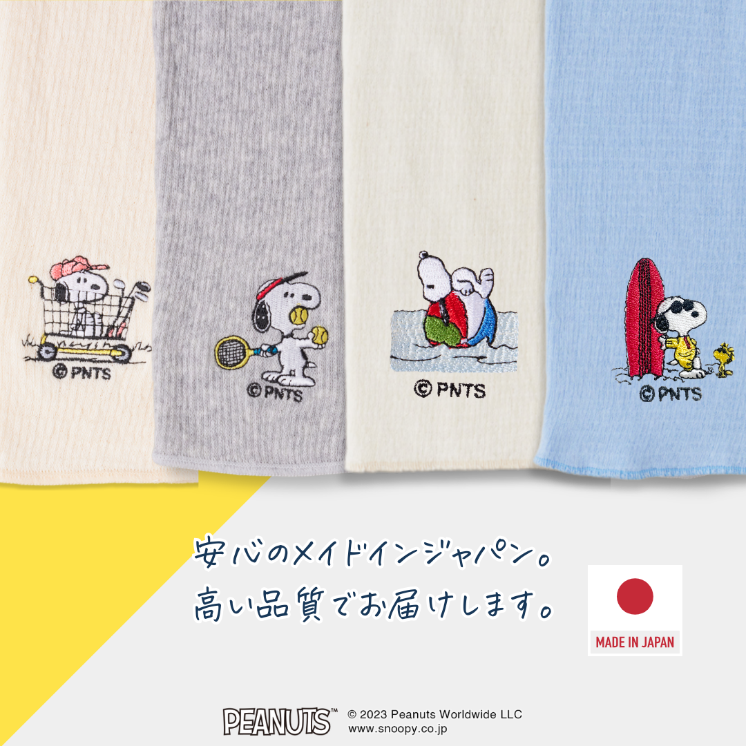 全世代に愛される「PEANUTSデザイン」刺繍を施すことにより「大人らしさ」と「可愛らしさ」の両立を実現。使用しているコットンは全てオーガニック。質が高い製品へと昇華させました。敏感肌でお悩みの方も安心していただけるよう、縫い目がない【丸編み】を採用しております。
